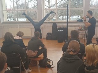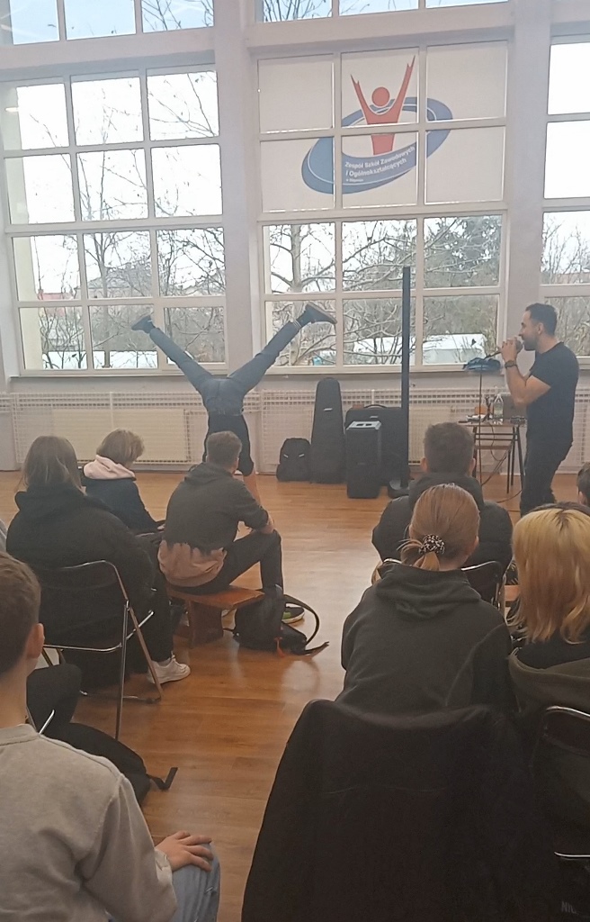W poniedziałek 21.11.2022 r. uczniowie naszej szkoły wzięli udział w Programie Profilaktyki Uzależnień „Antymina- nie daj się wysterować na minę”, którego autorem i wykonawcą jest raper „Kolah” Mirosław Kolczyk.