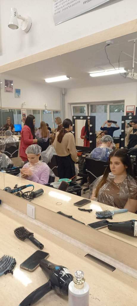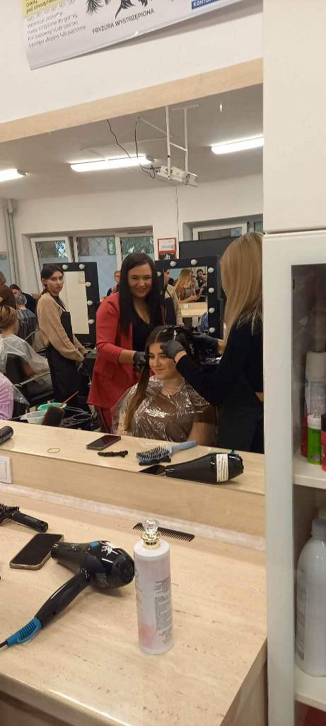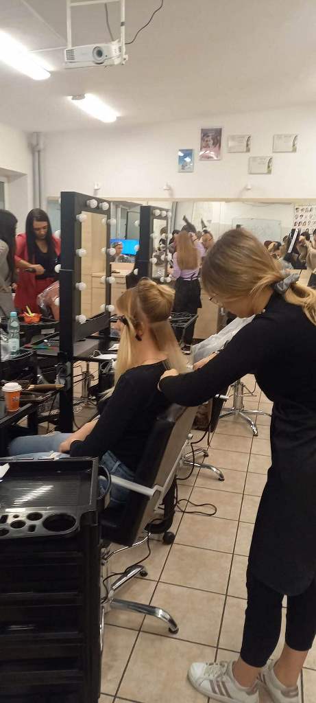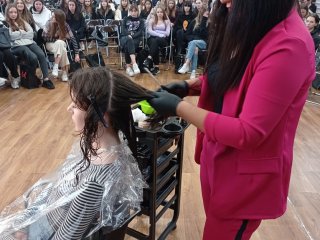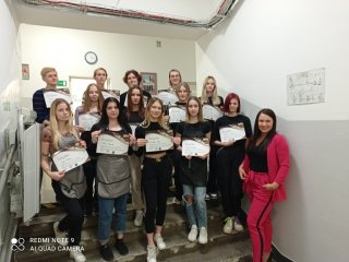 29 listopada do naszej szkoły przyjechała profesjonalistka w tym temacie, zawodowy fryzjer i szkoleniowiec pani Katarzyna Maczała. Pani Katarzyna wyjaśniła naszym uczniom od podstaw na czym te zabiegi polegają, do jakiego typu włosów dobrać odpowiedni zabieg, jakich kosmetyków należy używać, jak dbać o włosy po tego typu zabiegach i zaprezentowała je na modelkach. W trakcie pokazu uczniowie mieli możliwość współpracować z p. Katarzyną i spróbować swoich sił przy wykonywaniu zabiegów. Po pokazie grupa uczniów przeszła gruntowne szkolenie w zakresie wykonywania zabiegów keratynowego prostowania, nanoplastii, bioplastii i Botoxu na włosy. Pod czujnym okiem specjalisty wykonywały odpowiedni zabieg na modelkach a uwieńczeniem ich pracy było ogromne zadowolenie z efektów jakie uzyskały i certyfikat ukończenia szkolenia.