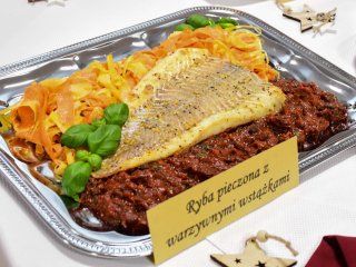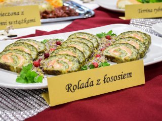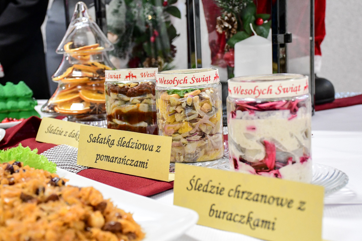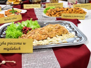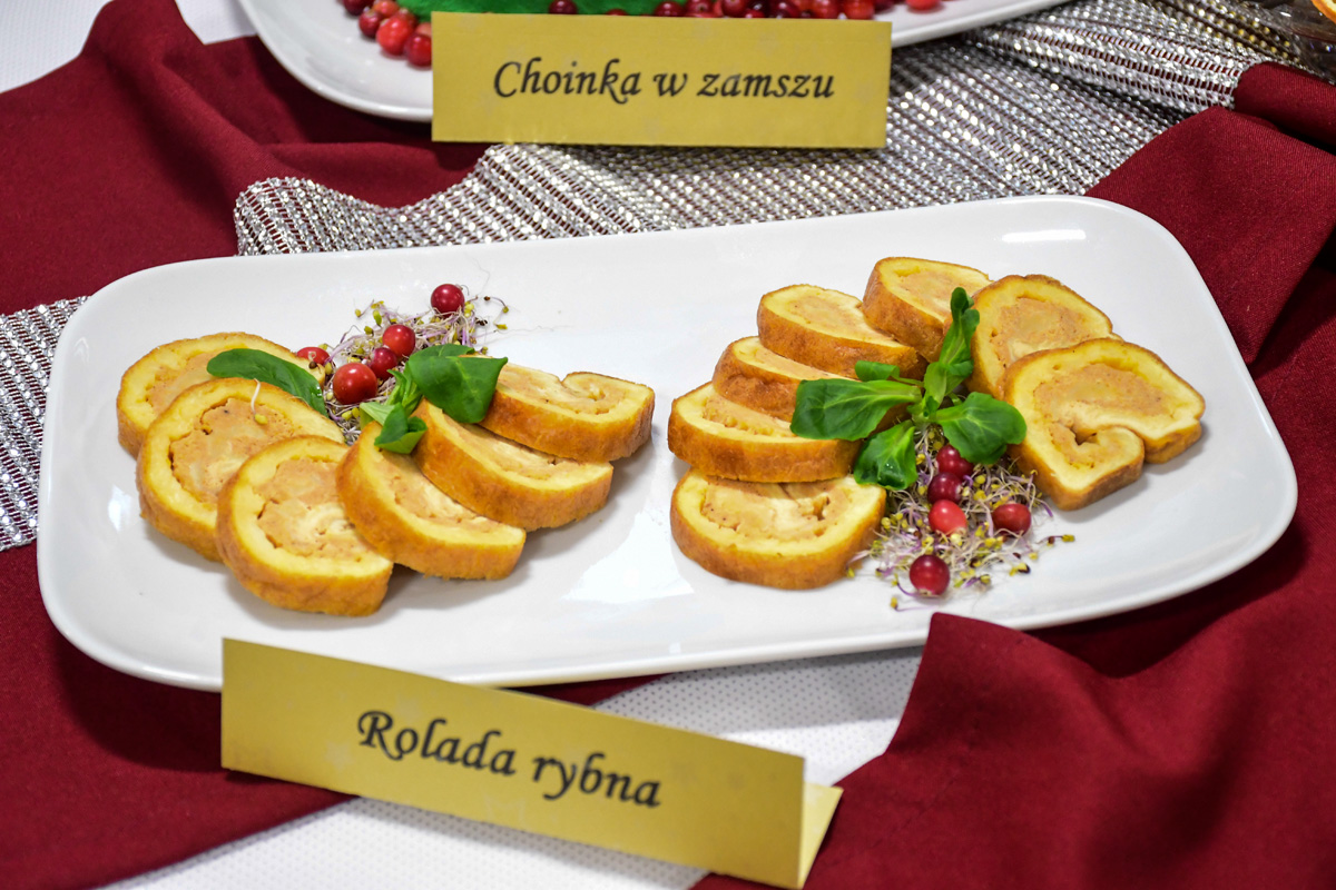 Na świątecznym stole zagościły takie potrawy jak terrina rybna, rolada rybna, rolada z łososiem, kapusta z ciecierzycą, ryba pieczona w migdałach, ryba pieczona z warzywnymi wstążkami, sałatka śledziowa z pomarańczami, śledzie chrzanowe z buraczkami, śledzie z daktylami nie zabrakło tradycyjnego makowca, orzeszków oraz nowoczesnego cukiernictwa m.in. choinka w zamszu, monoporcje w lustrzanej polewie.