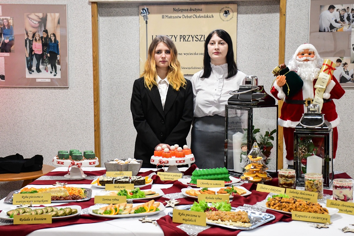 Młodzież włożyła dużo pracy i serca w przygotowanie potraw i dekoracji świątecznych, które pozwoliły wprowadzić całą społeczność szkolną w atmosferę Świąt Bożego Narodzenia.