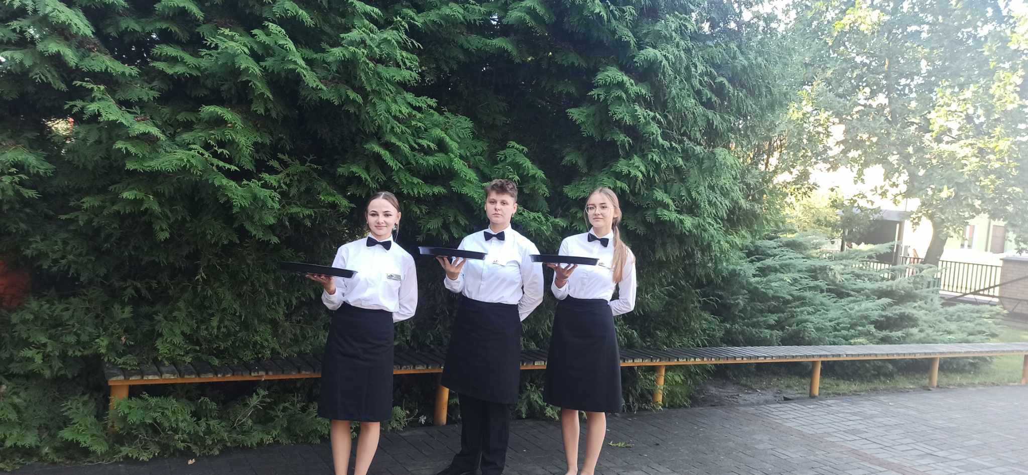 Uczniowie Technikum usług kelnerskich pomagali w przygotowaniu uroczystości szkolnej w SP Nr 1 w Biłgoraju....