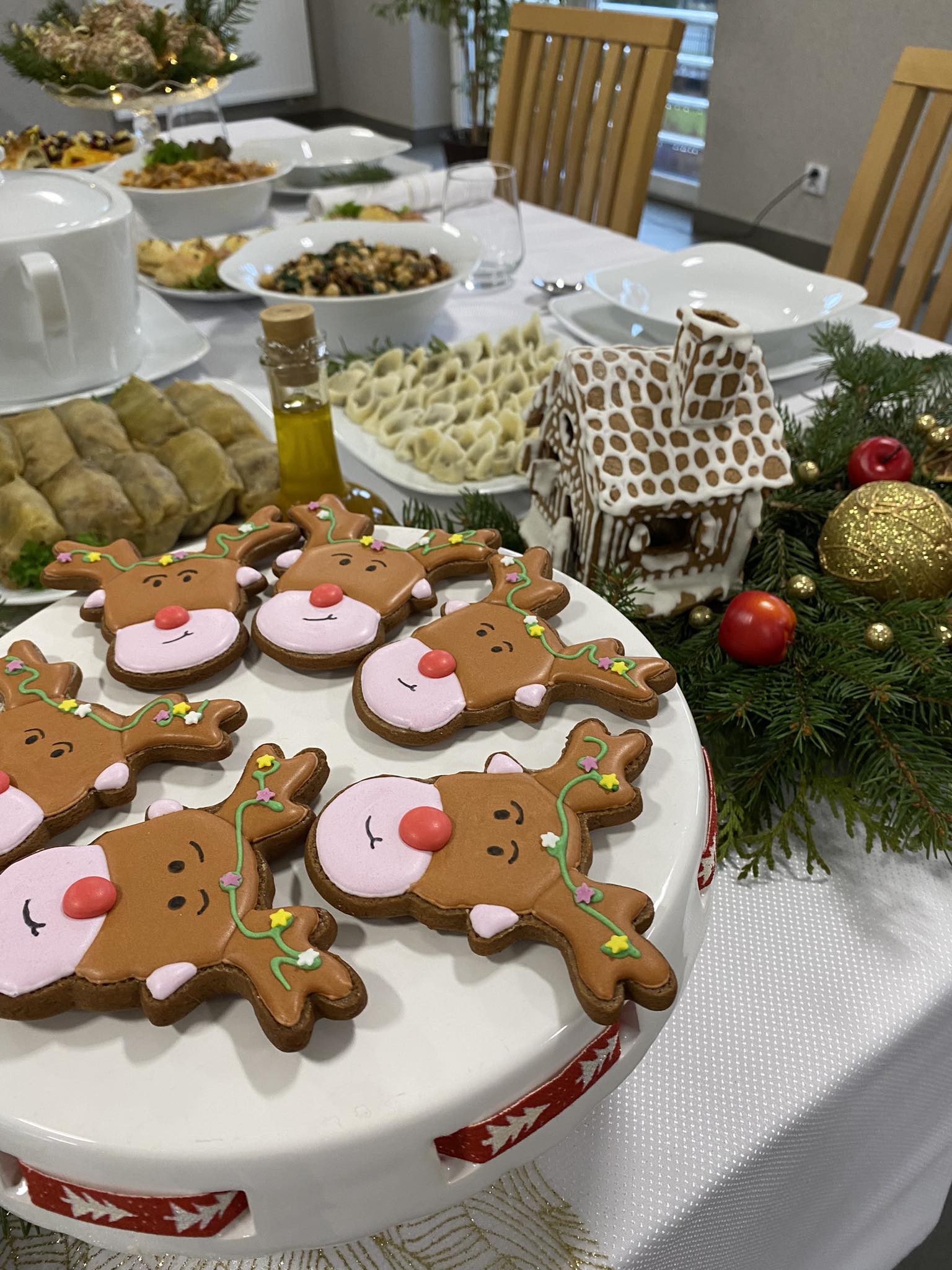 Uzupełnieniem wystawy były dekoracje świąteczne w postaci chatki z piernika i lukrowanych jabłek.