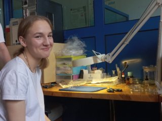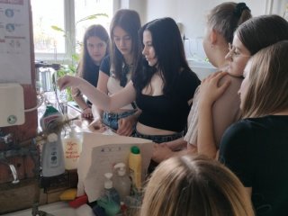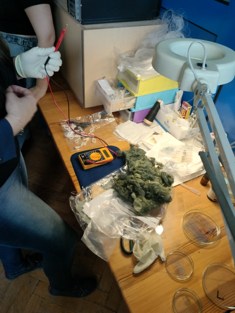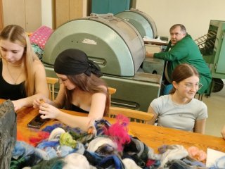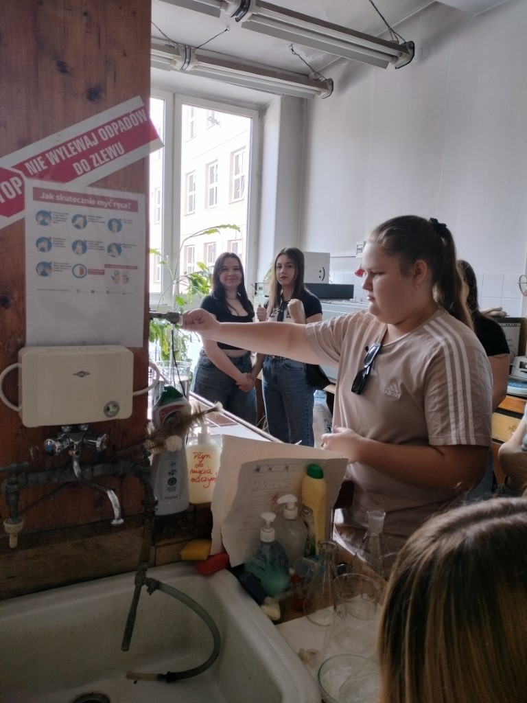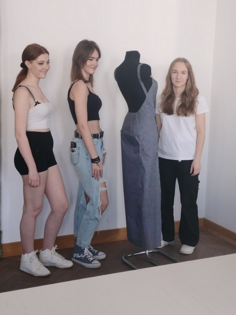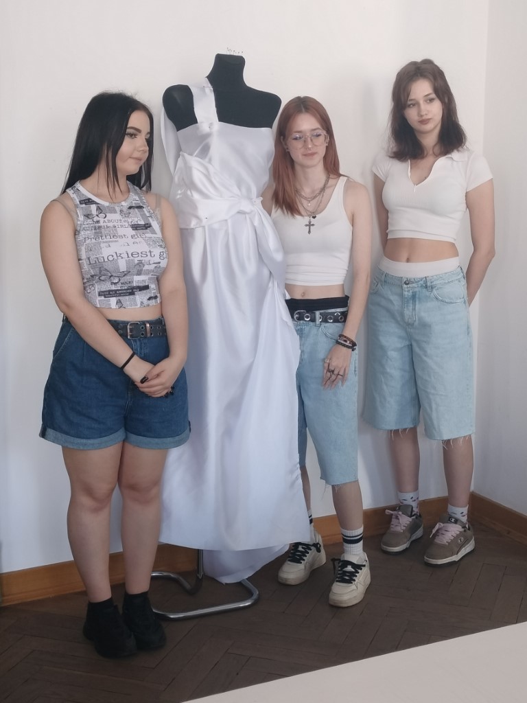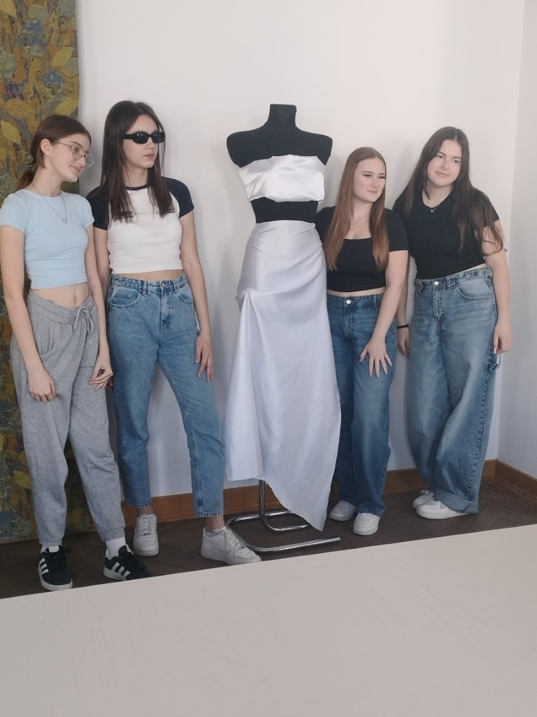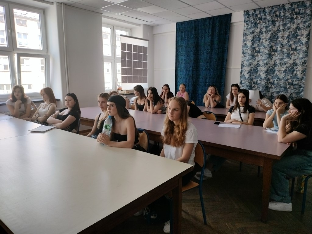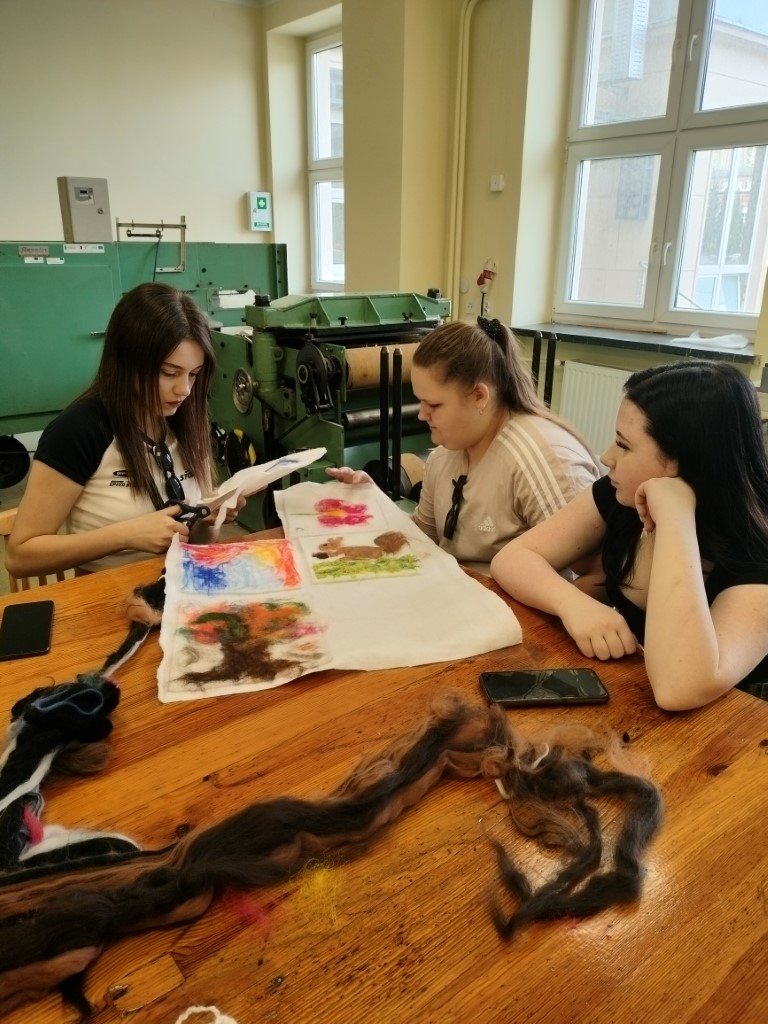 Już w pierwszym dniu odwiedziliśmy najstarszą w Polsce fabrykę nici ARIADNA, gdzie zapoznaliśmy się z procesem produkcyjnym całego asortymentu nici oraz historią zakładu. Drugi dzień to niezwykle interesujące warsztaty na Politechnice Łódzkiej, na zaprzyjaźnionym Wydziale Technologii Materiałowych i Wzornictwa Tekstyliów. Pierwsze zajęcia przeprowadziła z nami Pani dr inż. Emilia Śmiechowicz - zapoznała nas z włóknami funkcjonalnymi, które stosowane są do różnych celów specjalnych, np. włókna jako sensory, magnetyczne, czy włókna alginianowe. Przeprowadzaliśmy ocenę organoleptyczną i mikroskopową włókien specjalnych przy zastosowaniu różnych czynników zewnętrznych wywołujących np. ich zmiany barwne, czy strukturalne. Dając popis naszym talentom wzorniczym, pod okiem dr inż. Marka Idzika wykonaliśmy włókninę techniką igłowania. Kolejne zajęcia to już część artystyczna naszego zawodu. Dr inż. Elżbieta Radaszewska wprowadziła nas w tajniki zasad projektowania ubioru spersonalizowanego, korzystając z metodologii design thinking. Następnie projektowaliśmy ubiory spersonalizowane na wieczorową okazję przy pomocy manekina i materiałów odzieżowych. Odbywało się to pod czujnym okiem projektantów: dr Aleksandry Wereszki i dr Andrzeja Fodera. W trzecim dniu odwiedziliśmy najlepszą farbiarnię i wykańczalnię odzieży w Łodzi KNK KANAKA. To tutaj powstają najładniej wybarwione jeansy, czy kolorowe T-shirty. Firma szczyci się posiadaniem certyfikatu Global OrganicTextile Standard (GOTS). Wszystkie ubrania poddawane tutaj obróbce są bezpieczne dla nas, a powstałe przy produkcji ścieki i inne odpady nie zagrażają środowisku.