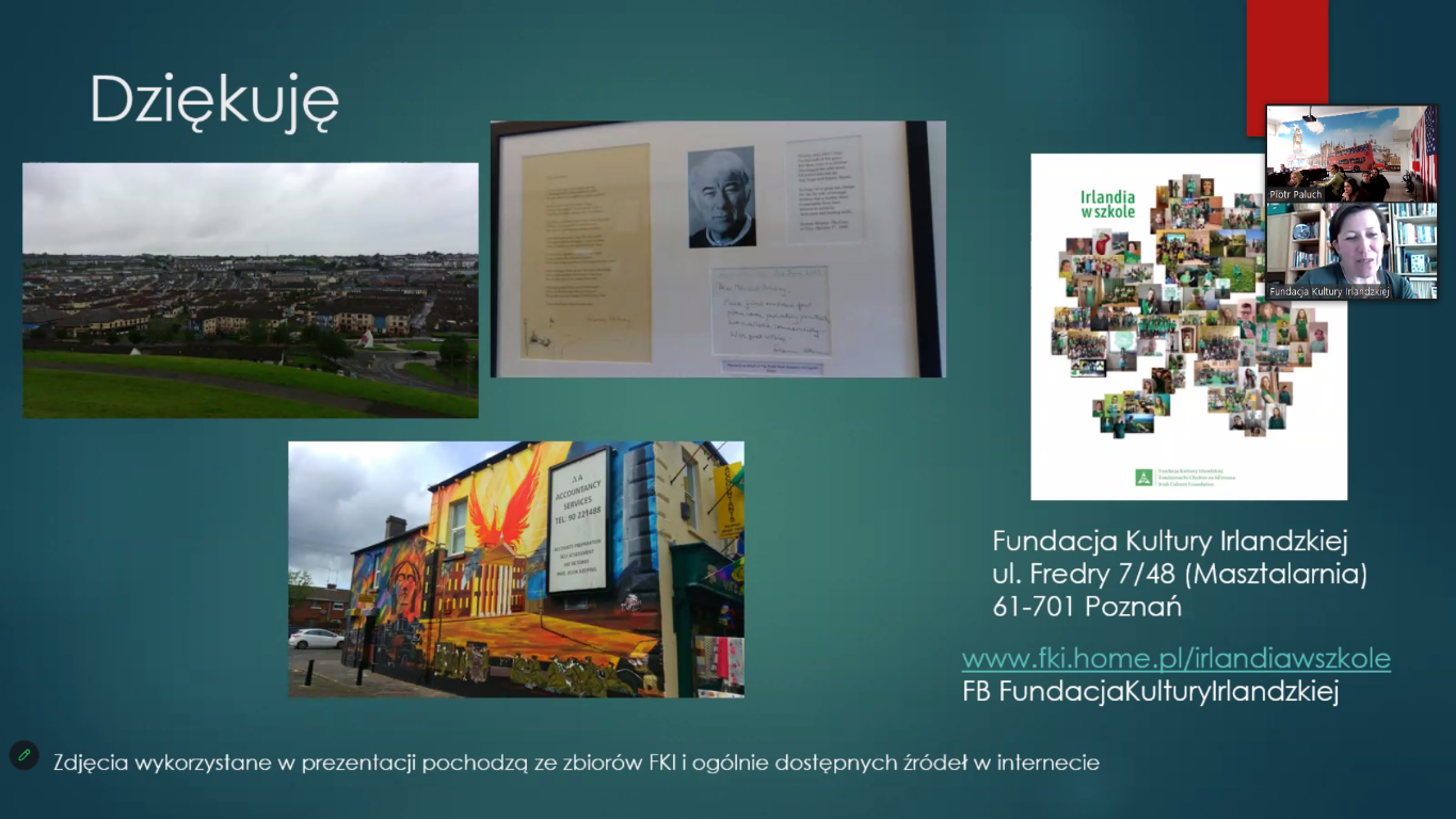 W dniu 24 kwietnia uczniowie z klasy 4 TGO pod opieką p P. Palucha brali udział w kolejnej lekcji w ramach współpracy z Fundacją Kultury Irlandzkiej w Poznaniu.