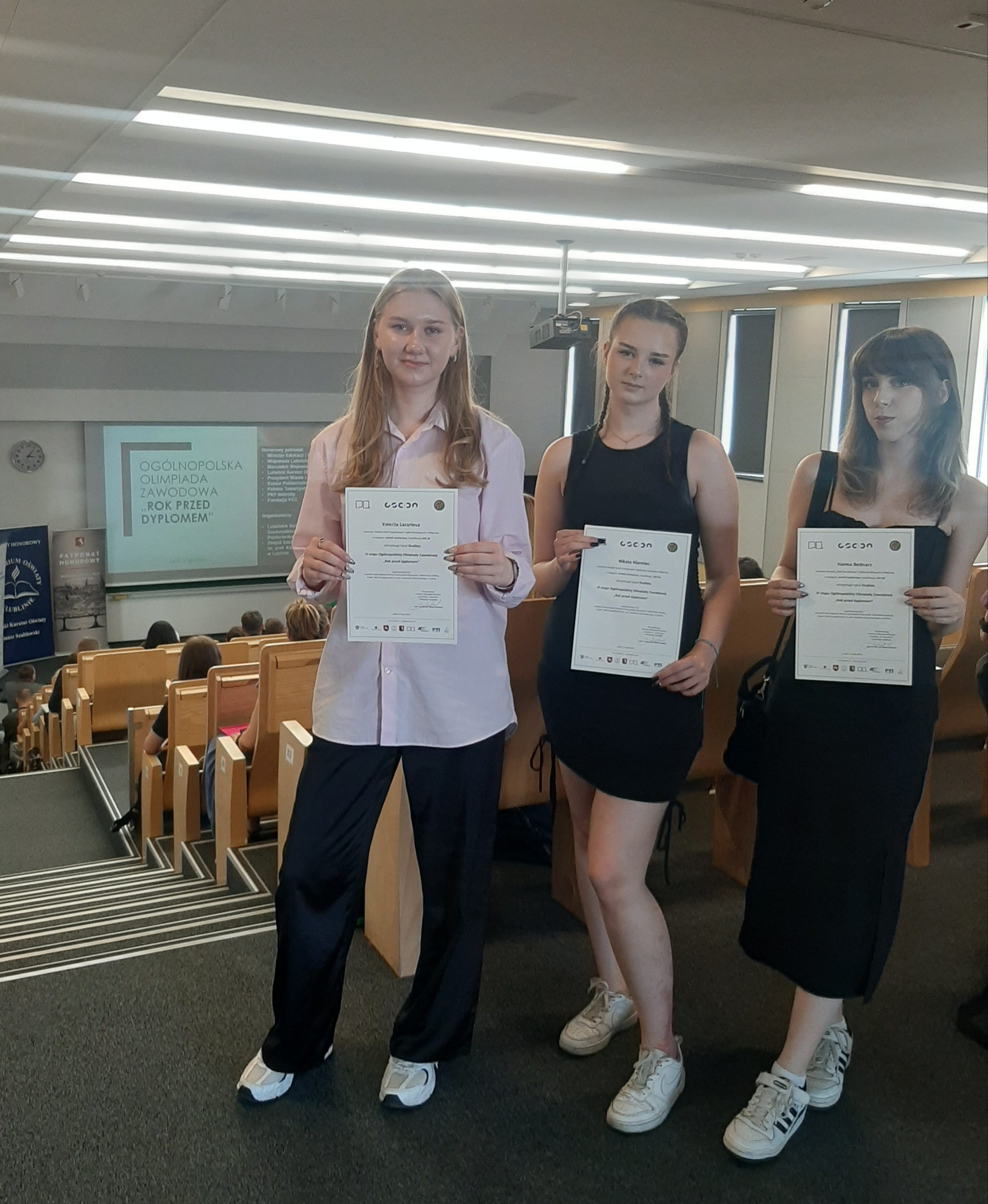 Trzy uczennice Technikum hotelarskiego z tytułem finalisty III etapu Ogólnopolskiej Olimpiady Zawodowej „Rok przed dyplomem”, organizowanej przez Lubelskie Samorządowe Centrum Doskonalenia Nauczycieli, Politechnikę Lubelską, Zespół Szkół Energetycznych im. prof. Kazimierza Drewnowskiego w Lublinie.