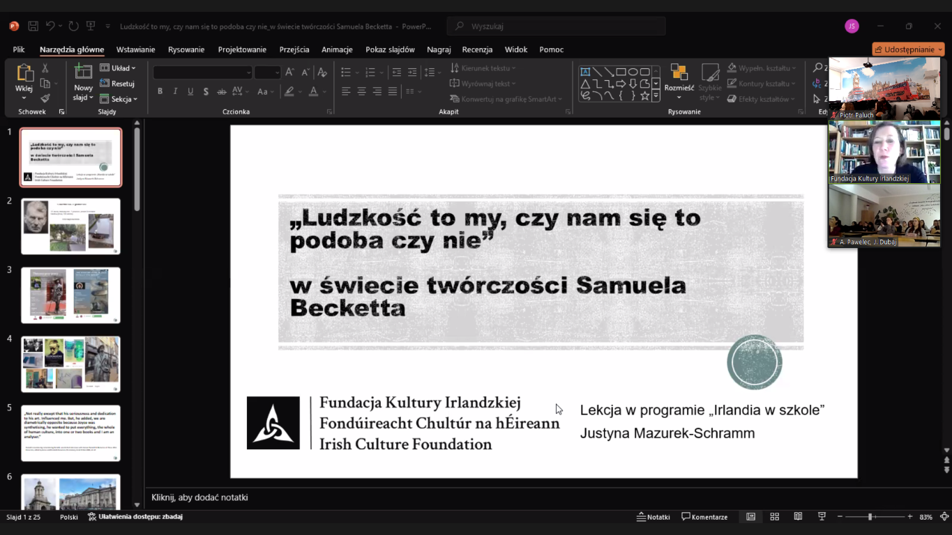 Lekcją poprowadzoną przez panią Justynę Mazurek-Schramm 21 października dla klas 3tost i 3tt otworzyliśmy kolejny rok współpracy z Fundacją Kultury Irlandzkiej w Poznaniu, w ramach której realizujemy projekt Irlandia w Szkole.