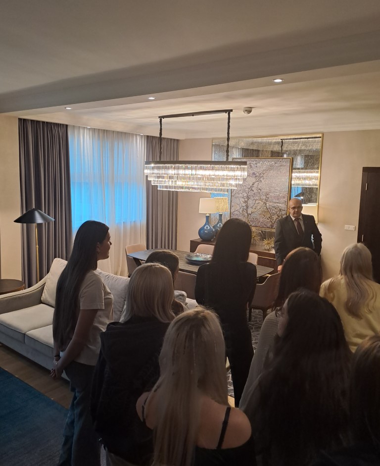a także pracę consierga, portiera i bagażowego. Zapoznali się z wystrojem i organizacją recepcji oraz hallu recepcyjnego. Byli pod wrażeniem dużej uprzejmości w stosunku do gości.