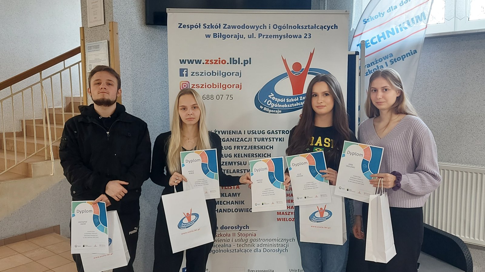 Regulamin olimpiady zakłada kwalifikację do kolejnego etapu trzech osób z najlepszymi wynikami w szkole. W związku z tym w etapie okręgowym wezmą udział: Mateusz Nastaj 5TF, Krzysztof Kazur 5TMA, Anna Vasylenko 5THT.