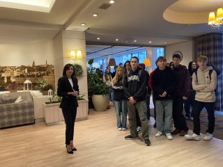 Grand Hotel jest najstarszym obiektem tego typu w mieście, wyróżnia się klimatycznym renesansowym wystrojem oraz przepiękną fasadą. Restauracja hotelowa to styl i klasyka gatunku, ustawiony w głównej sali fortepian dodaje splendoru temu miejscu. Uczniowie zwiedzili restaurację, zostali zapoznani z organizacją bufetów śniadaniowych i usługi room service dla gości hotelowych.