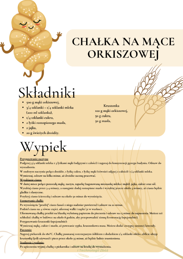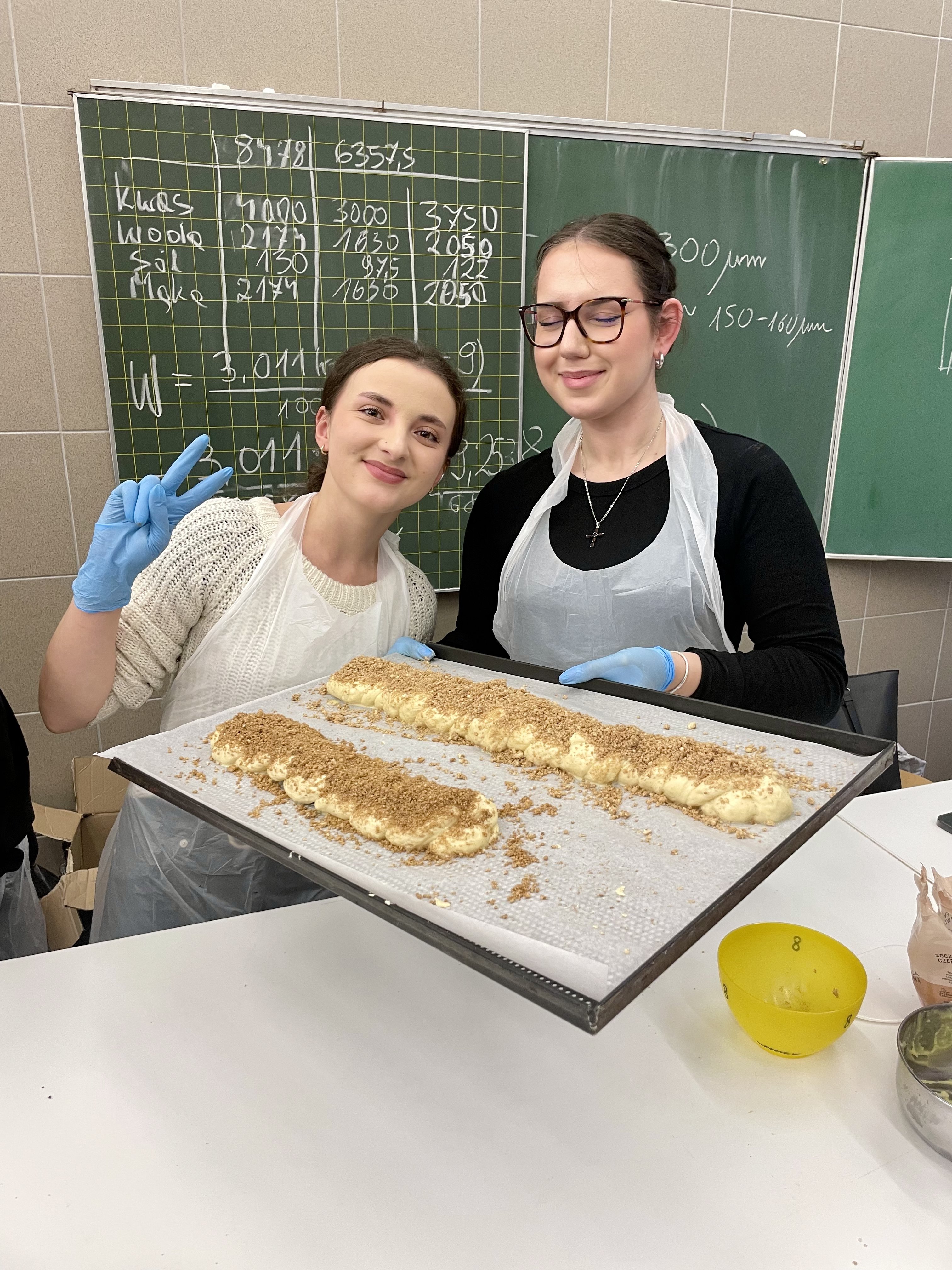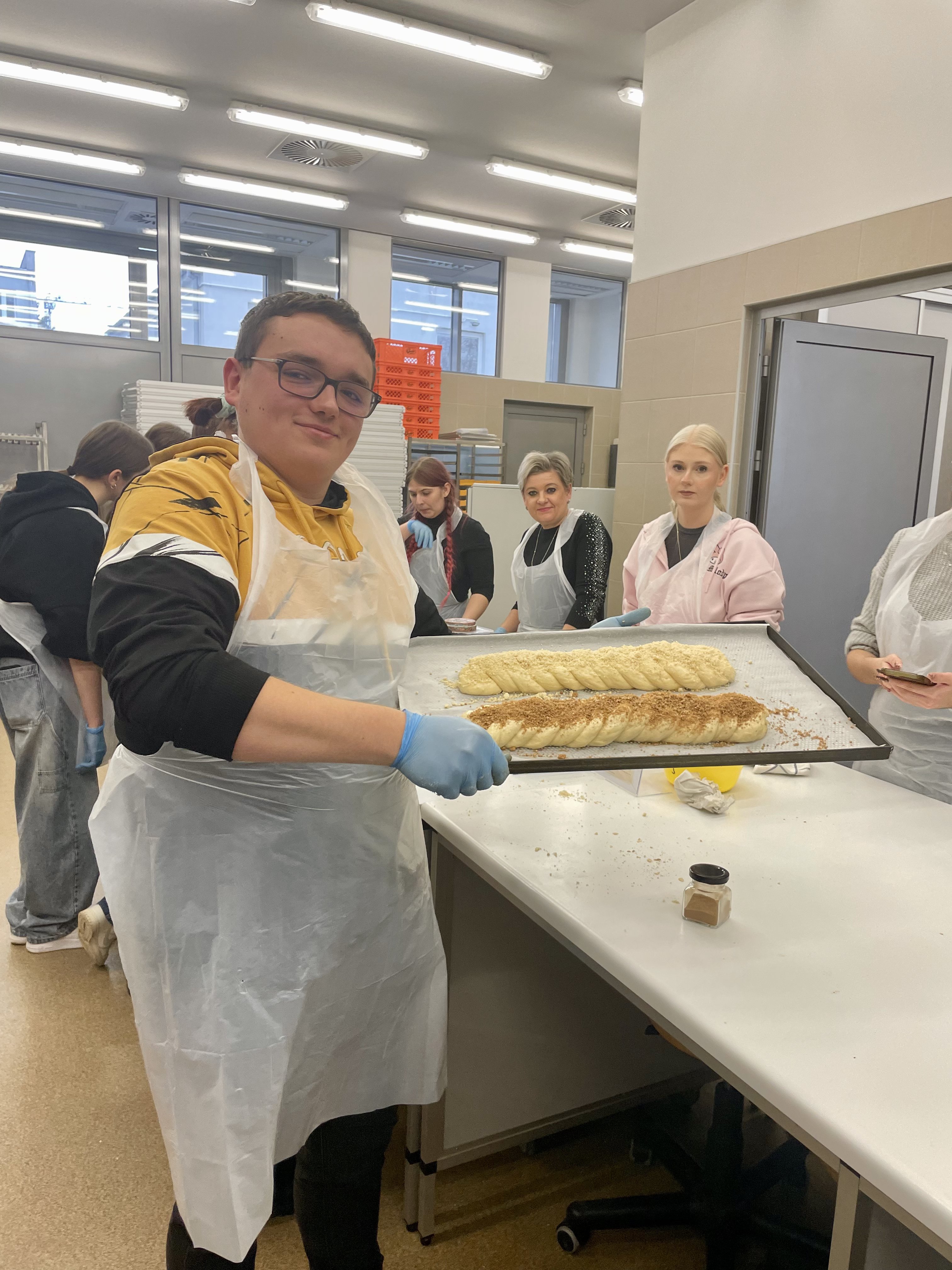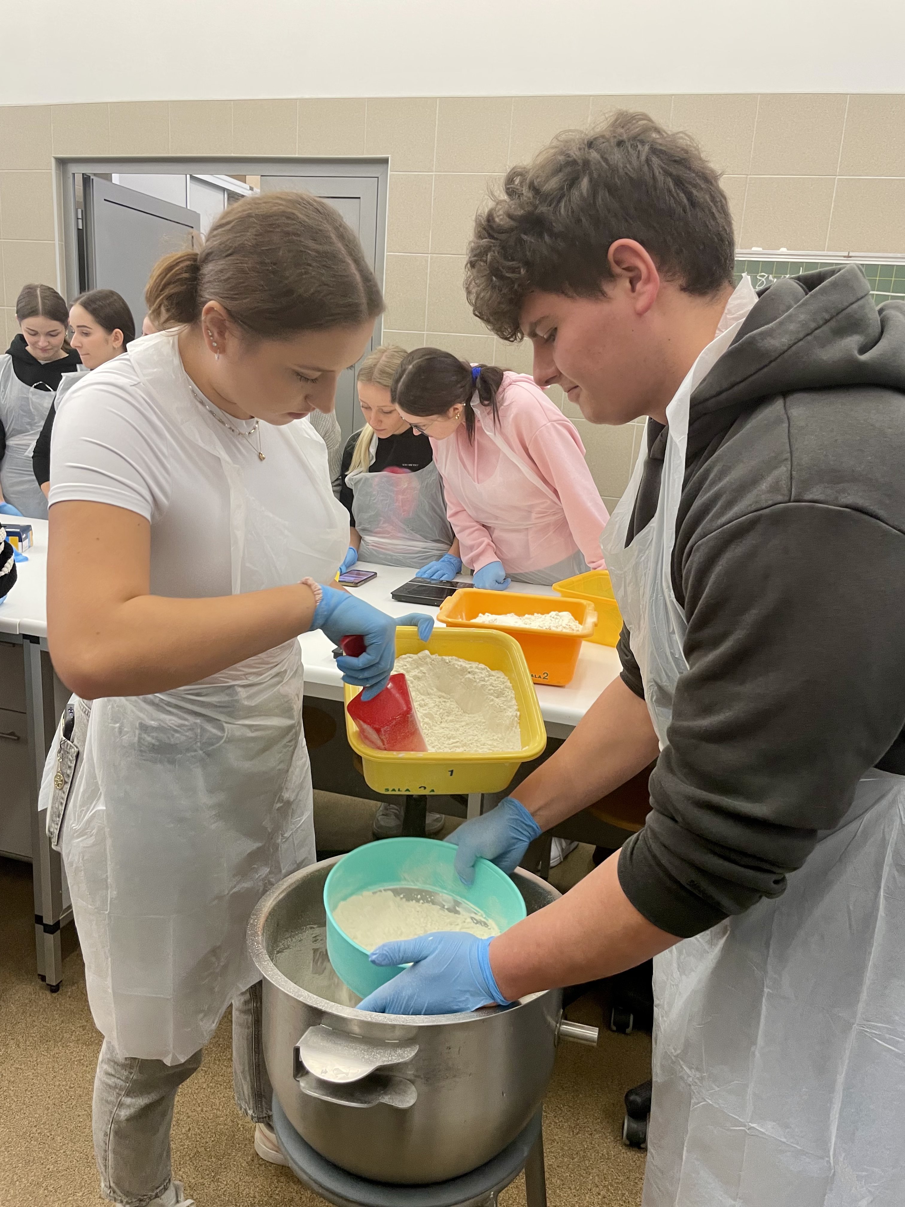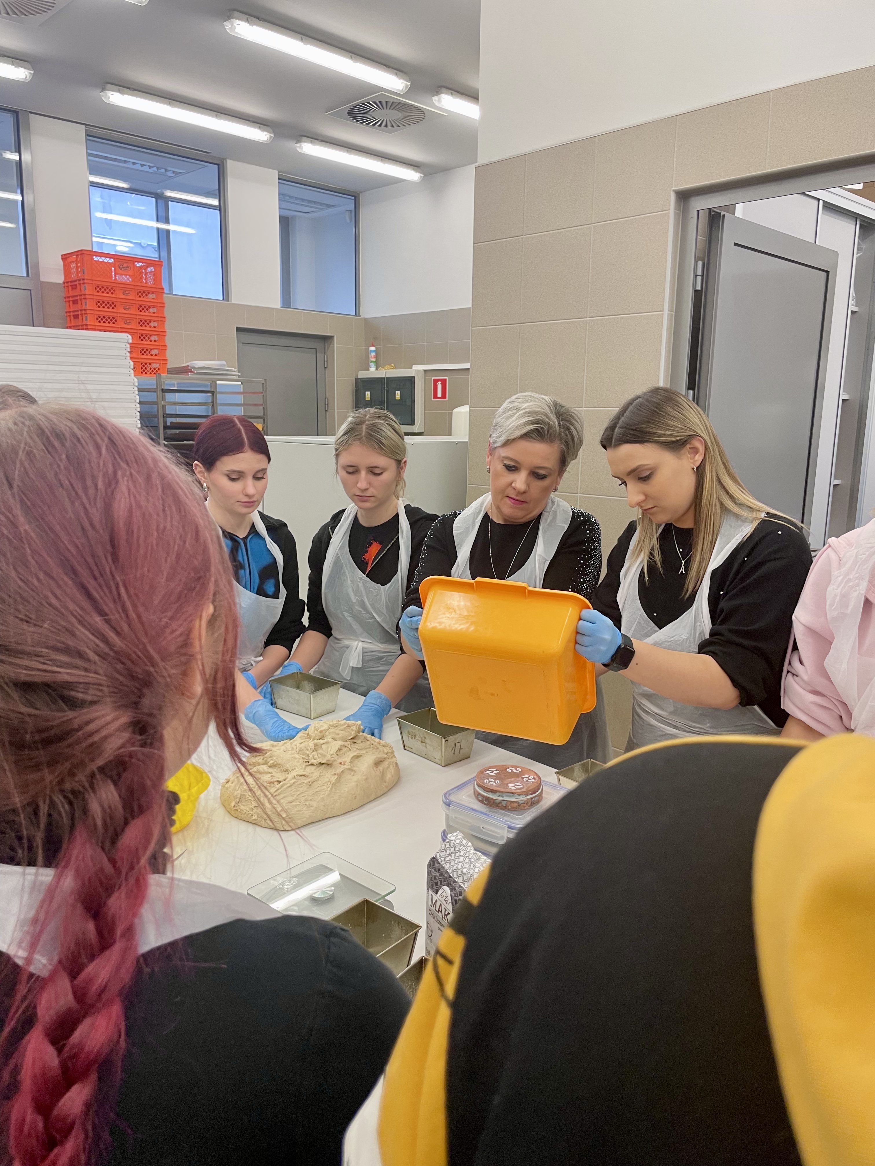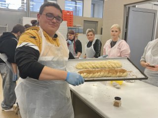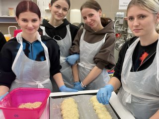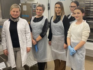Uczniowie najpierw wysłuchali krótkiego wykładu na temat produktów zbożowych, przygotowywania zakwasu żytniego, sposobu produkcji makaronu, a następnie uczestniczyli w części praktycznej i samodzielnie wykonali: chałkę na mące orkiszowej z kruszonką , chleb pszenny z dodatkiem soczewicy. Ponadto otrzymali zakwas żytni do wypieku chleba żytniego pytlowego do wykonania w domu wraz z inspirującymi przepisami. W kolejnej części warsztatów uczniowie mieli możliwość obejrzenia produkcji makaronu z pszenicy durum od podstaw. Na ten proces składają się: przygotowanie surowców, sporządzenie ciasta, formowanie i wykrawanie w specjalnej maszynie oraz suszenie w odpowiedniej suszarni, sortowanie oraz pakowanie produktu już gotowego. Każdy z uczestników otrzymał samodzielnie upieczone produkty zbożowe: chałkę z kruszonką, chleb udekorowany w dowolny sposób za pomocą szablonów, a także zakwas oraz makaron. Ostatnim punktem programu było zwiedzanie uczelni, sal wykładowych, ćwiczeniowych oraz pracowni gastronomicznych. Uczniowie mieli okazję do zapoznania się z ofertą studiów wyższych i w przyszłości kontynuowania swojej nauki w tym zawodzie. Wyjazd zorganizowała pani Angelika Woźnica - nauczyciel przedmiotów zawodowych gastronomicznych oraz wychowawca klasy 5 TGO pani Anna Kraczowska- Bednarz. Dzięki inicjatywie pani Angeliki Woźnicy nasza szkoła nawiąże współpracę z Wydziałem Nauk o Żywności i Biotechnologii w najbliższym czasie.