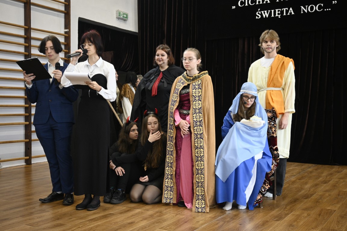 Czy pasterze mogą się lenić, a do tego spierać z królami? Kto podsuwa złe pomysły Herodowi? Odpowiedzi na te pytania zaprezentowali uczniowie naszej szkoły w teatralnym widowisku pt. „Oszaleli Anieli”. W tegorocznych jasełkach ukazana została tajemnica narodzin Chrystusa w zaskakujący sposób. Brawurowa akcja, żywa narracja i barwne stroje oddały klimat tamtych wydarzeń sprzed 2000 lat.
