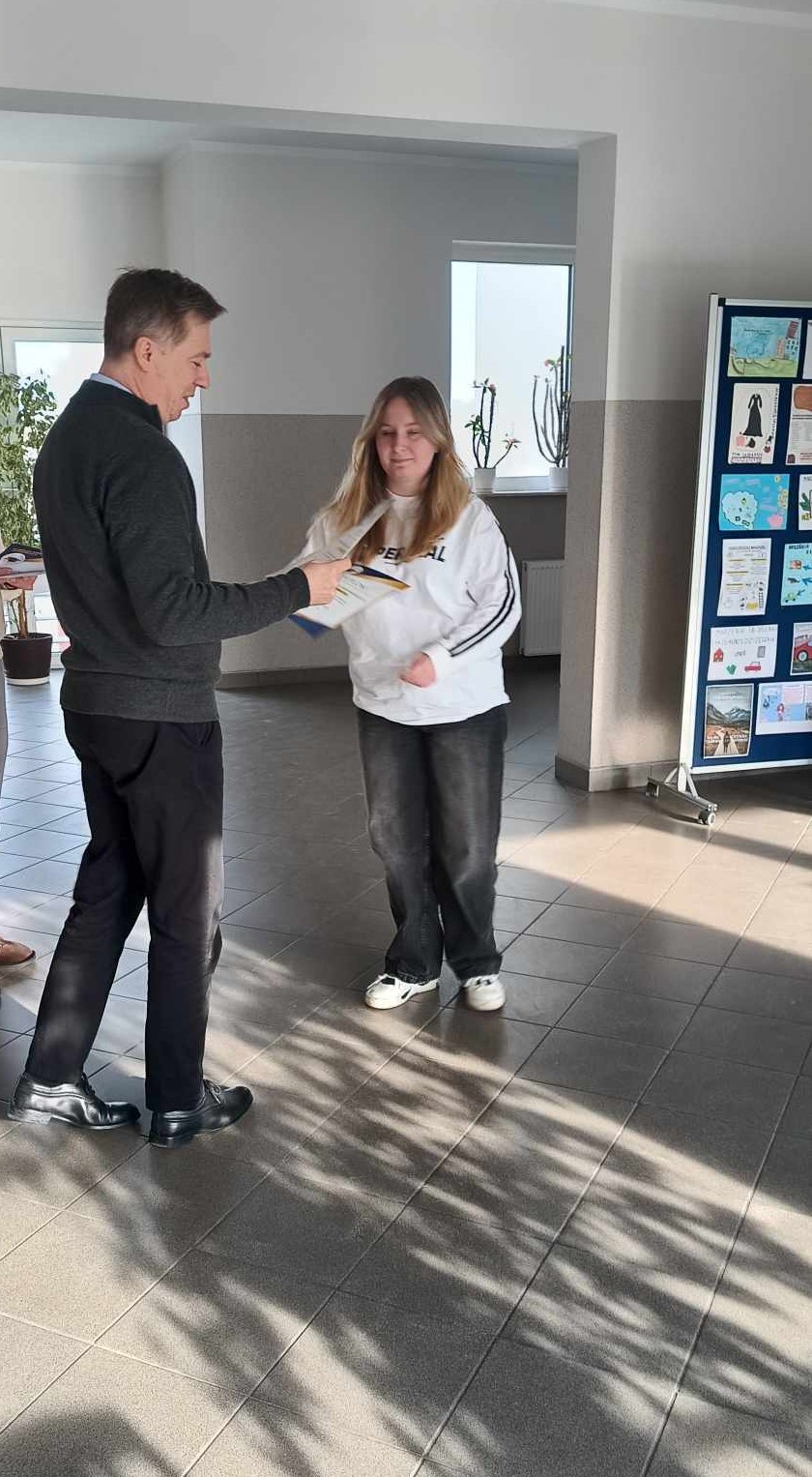 W piątek, 24 stycznia 2025 r. Pan Dyrektor Adam Balicki wręczył uczniom pamiątkowe dyplomy oraz pogratulował uzyskanych wyników. Wśród uczniów naszej szkoły najlepsi okazali się: