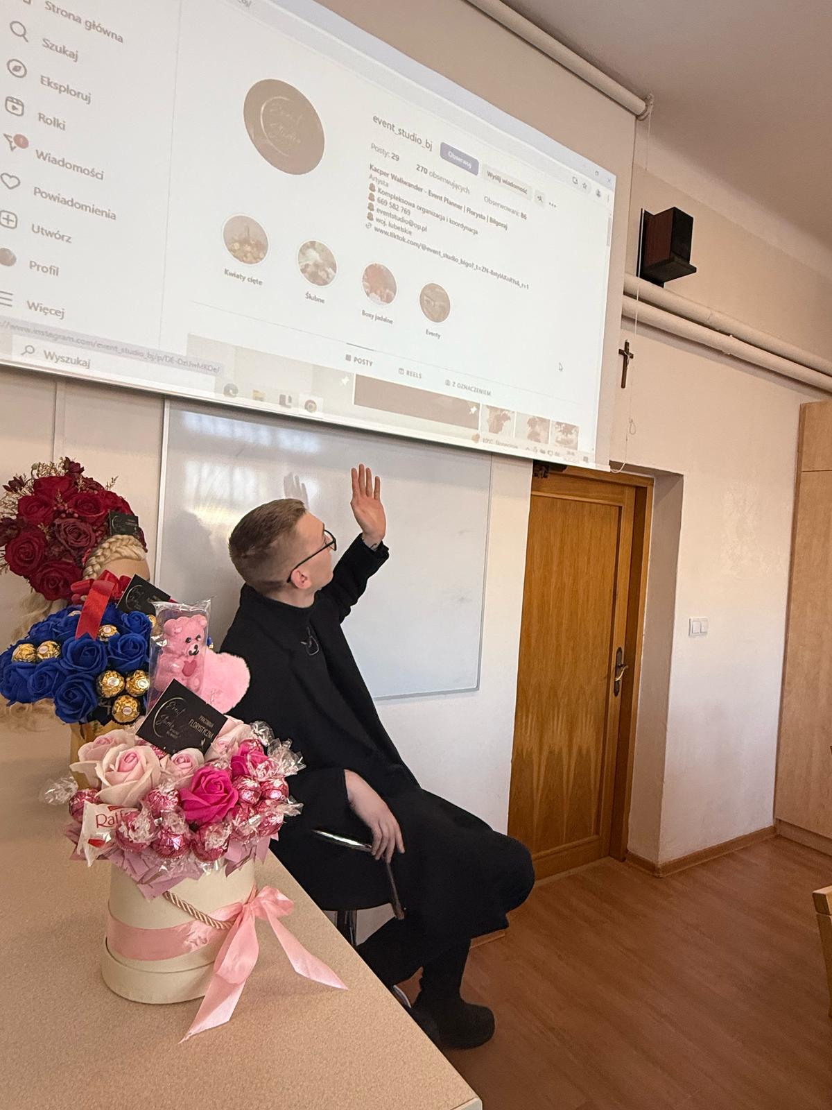 Gościem naszego spotkania był Kacper Waliwander, który opowiedział jak nauka w naszej szkole pozwoliła mu zdobyć wiedzę i umiejętności dziś wykorzystywane w prowadzeniu własnej działalności. To w szkole nauczył się nie tylko profesjonalnej obsługi gości, ale także organizacji pracy, planowania wydarzeń i zarządzania zespołem. Te umiejętności okazały się kluczowe, gdy zdecydował się otworzyć własny biznes – kompleksową organizację przyjęć okolicznościowych (dekoracje, florystyka) Event Studio – Kacper Waliwander.