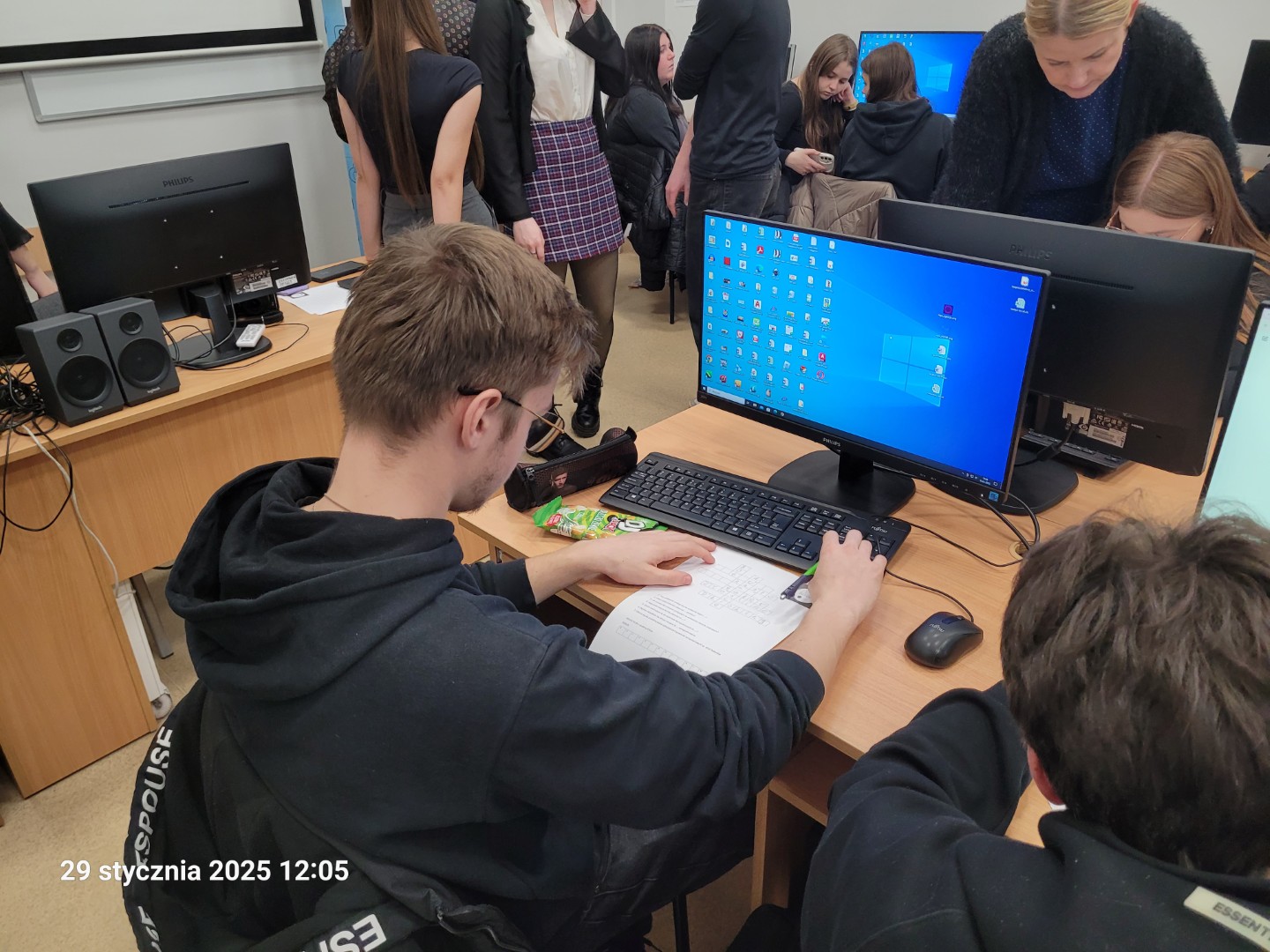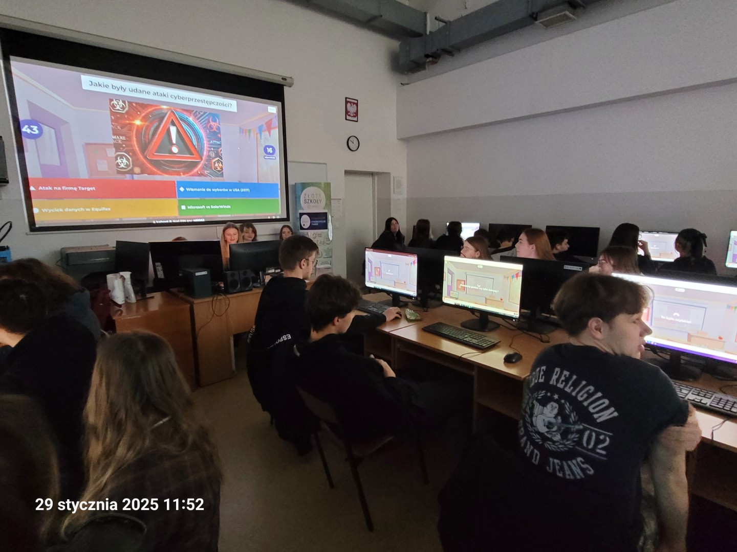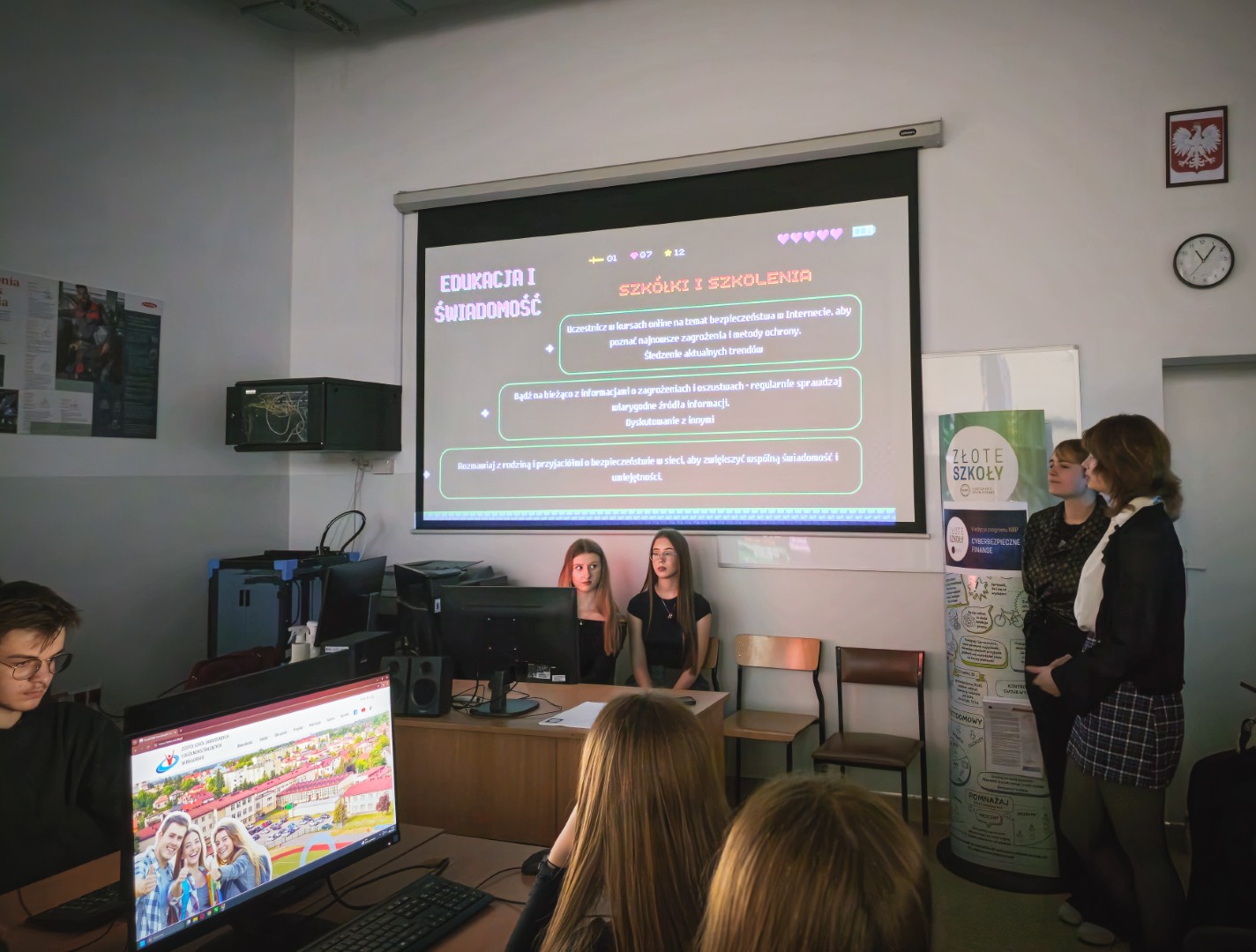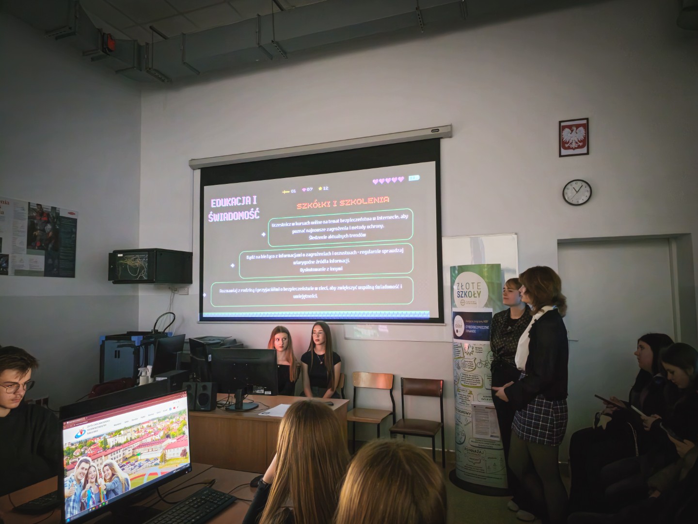 W styczniu i lutym 2025 r. uczniowie wraz z nauczycielem koordynatorem i nauczycielami przedmiotów informatycznych oraz przedmiotów zawodowych zapoznawali się z materiałami umieszczonymi na stronie NBP, przygotowywali plan realizacji zadań wskazanych przez Program Złote Szkoły NBP, dzielili się zadaniami, rolami i funkcjami oraz przygotowywali różnorodne materiały edukacyjne. Uczniowie przygotowali ankietę wśród uczniów dotyczącą poziomu wiedzy i świadomości o cyberzagrożeniach w codziennym życiu młodzieży i ich bliskich, aby dostosować poziom prezentowanych treści do zasobu wiedzy i doświadczenia użytkowników.