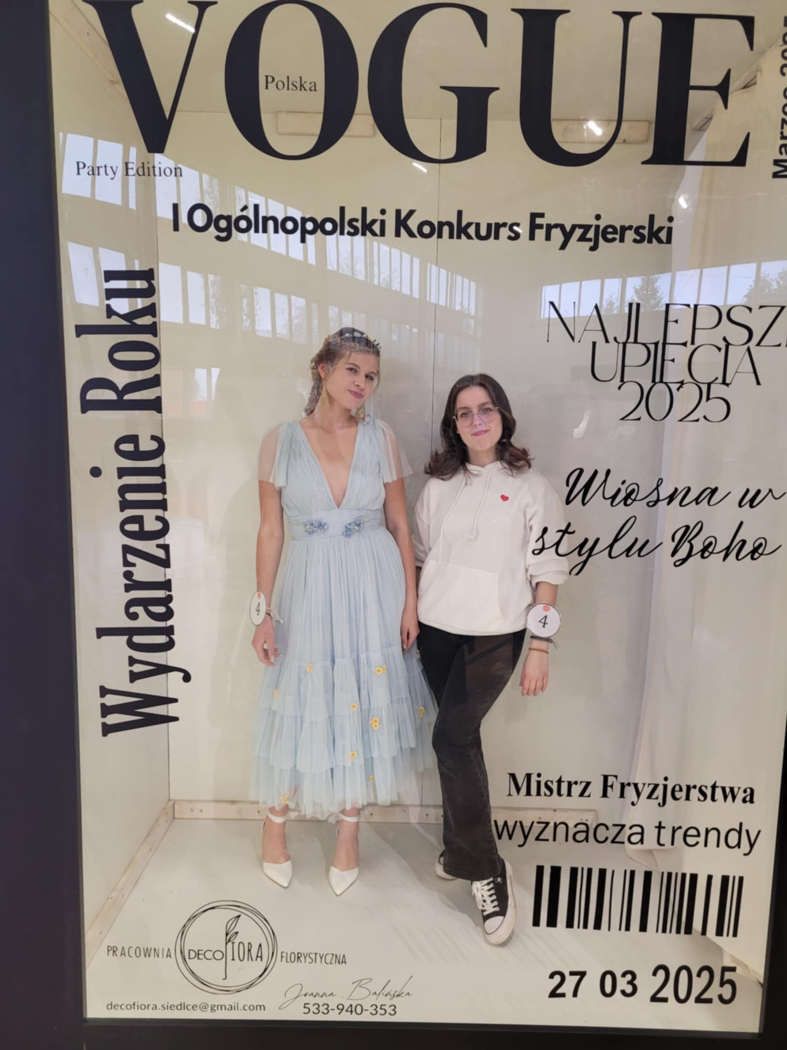 Dnia 27 marca 2025 roku w Zespole Szkół Ponadgimnazjalnych nr 5 w Siedlcach odbył się I Ogólnopolski Konkurs Fryzjerski pt. „Wiosna w stylu Boho”. W rywalizacji wzięło udział 24 utalentowanych młodych fryzjerów z 15 szkół. Wśród wyróżnionych znalazły się dwie uczennice naszej szkoły – Claudia Dzimira z klasy 4 TF ( modelka Natalia Żabczak) wyróżnienie od sponsora oraz Aleksandra Tutis z klasy 3fc (modelka Magdalena Ostasz), wyróżnienie od Pani Zuzanny Sumirskiej, autorki podręczników fryzjerskich. Uczestniczki miały za zadanie stworzyć fryzurę inspirowaną wiosennym stylem boho w ciągu 120 minut. Czas ten wymagał nie tylko technicznych umiejętności, ale również kreatywności i precyzyjnego wyczucia estetyki stylu. Konkurs był doskonałą okazją do pokazania swojego talentu i zdobycia cennego doświadczenia.