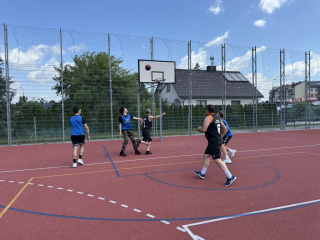 Dzień Sportu Szkolnego zakończyła rywalizacja uczniów z nauczycielami w meczu koszykówki 3x3, w której to konkurencji nauczyciele, dowodząc przewadze rutyny i doświadczenia nad młodością, nie bez trudu pokonali reprezentację uczniów naszej szkoły wynikiem 11:7.