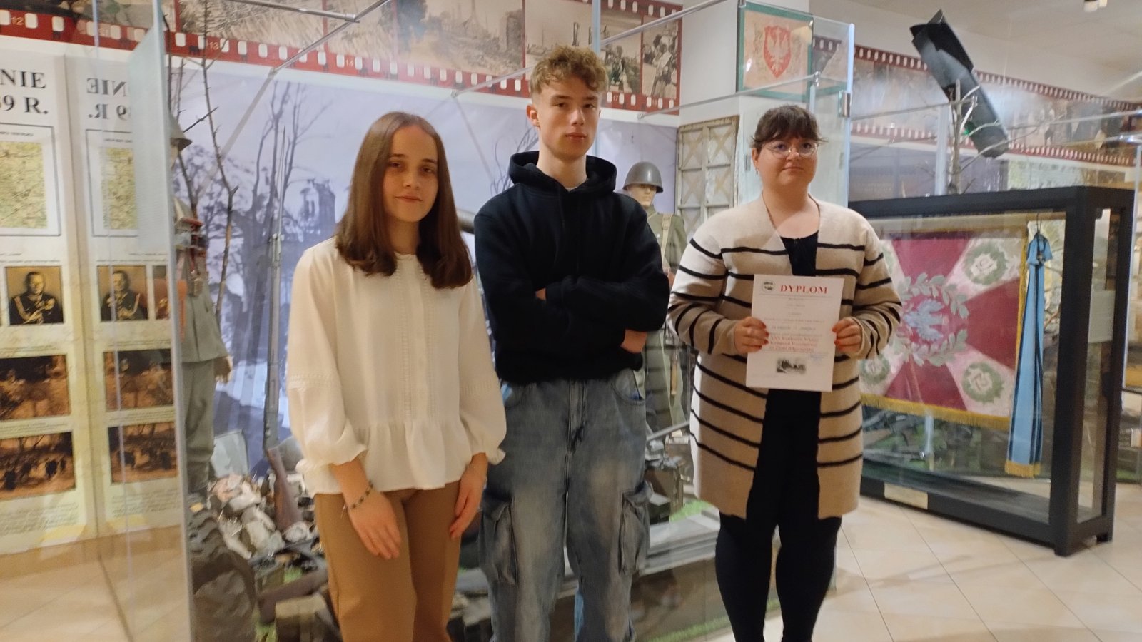 23 października w Szkole Podstawowej Nr 1 w Biłgoraju, obyła się XXX edycja konkursu wiedzy o kampanii wrześniowej 1939 roku. Konkurs skierowany jest do uczniów naszego powiatu, ma strzec pamięć o tragicznych i bohaterskich dziejach naszej małej ojczyzny w ogniu II wojny światowej. Uczniowie naszej szkoły, w składzie: Adrianna Kubik 2 TKG, Łucja Stańczyk 3 TKR, Paweł Rycerz 3 THT, zajęła drużynowo w kategorii szkół ponadpodstawowych 2 miejsce, a Łucja Stańczyk 3 TKR indywidualnie 4 miejsce. Po konkursie uczestnicy zwiedzili wystawy Muzeum Ziemi Biłgorajskiej i wysłuchali lekcji muzealnej.