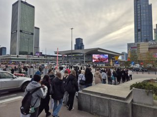 Wycieczkę zaczęliśmy od Punktu Informacji Turystycznej przy Pałacu Kultury i Nauki, gdzie odbywały się Targi.