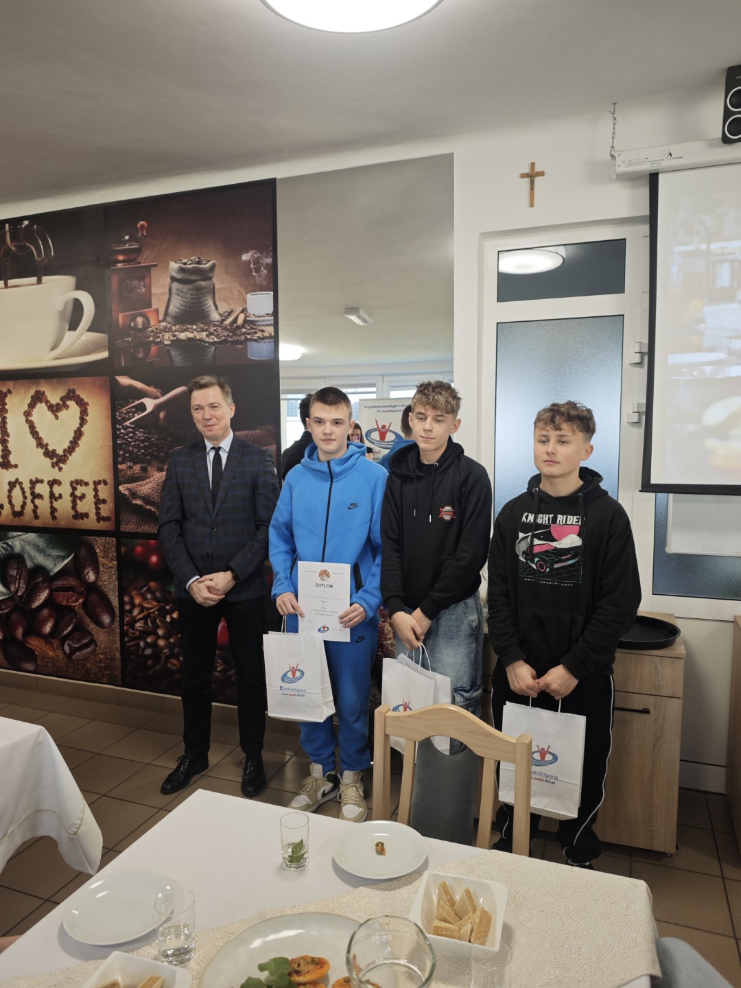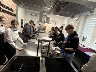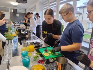 4 grudnia 2025r. w naszej szkole odbył się Konkurs Wiedzy o Żywieniu dla uczniów klas ósmych szkół podstawowych. Celem konkursu było wykształcenie wśród młodzieży szkolnej, potrzeby dbania o własne zdrowie oraz promowanie zdrowego stylu życia. Organizatorzy konkursu zachęcali do zapoznania się z bogatą ofertą kierunków gastronomicznych oferowanych w Zespole Szkół Zawodowych i Ogólnokształcących w Biłgoraju. Konkurs składał się z dwóch części: pisemnej i praktycznej. Uczniowie klas ósmych mieli możliwość rozwinąć swoje zainteresowania z zakresu żywienia i żywności -rozwiązując test on-line. W części praktycznej konkursu mogli pochwalić się wiedzą oraz umiejętnościami z zakresu gastronomii i kelnerstwa wykonując zadania w nowocześnie wyposażonych pracowniach: kelnerskiej i gastronomicznej. Najważniejszą częścią konkursu było oczywiście ogłoszenie wyników i wręczenie cennych nagród!