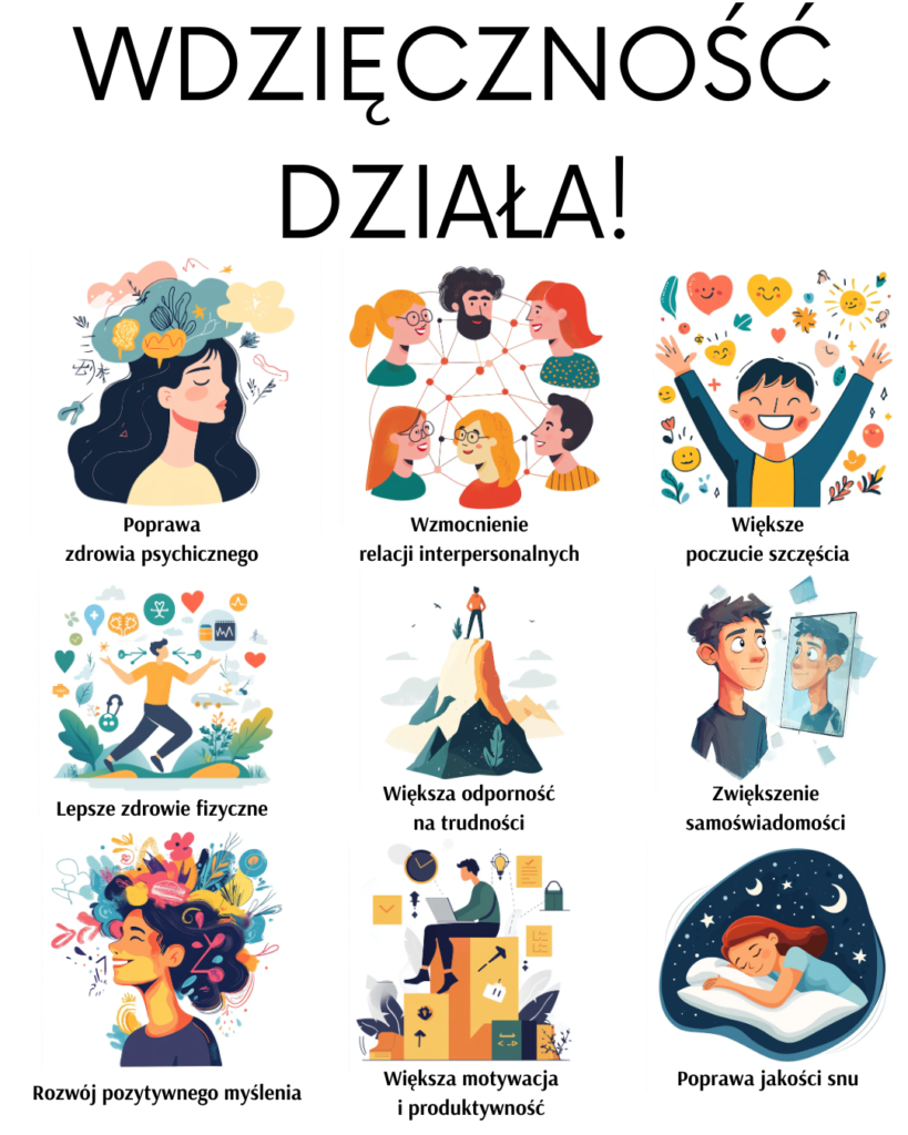 W ramach zadania „Prowadzenie dziennika wdzięczności” uczniowie wyruszyli w niezwykłą podróż do świata uważności, refleksji i życzliwości. Już na początku poznali ideę pracy z dziennikiem oraz dowiedzieli się, dlaczego nasz umysł częściej skupia się na porażkach niż na tym, co dobre i budujące. Podkreślono także dobrowolność dzielenia się zapiskami – zeszyt miał pozostać osobistą przestrzenią do szczerych myśli i uczuć.