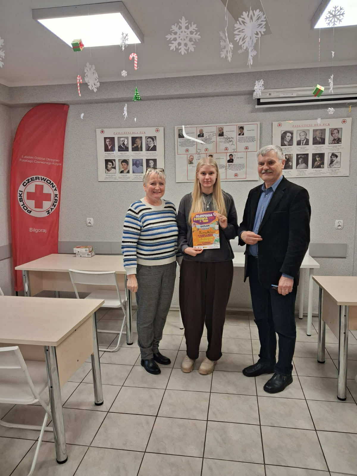 14 stycznia 2026 r. odbył się etap rejonowy XXXIII Ogólnopolskiej Olimpiady Promocji Zdrowego Stylu Życia PCK. Z radością ogłaszamy, że Oliwia Metner uczennica klasy V TG z Zespołu Szkół Zawodowych i Ogólnokształcących w Biłgoraju, zajęła I miejsce i zdobyła awans do etapu okręgowego w Lublinie!