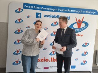 Z wielką przyjemnością informujemy, iż nasza uczennica Anna-Mariia Obervenets, która zdobyła 1 miejsce w etapie okręgowym i kwalifikację do etapu centralnego Olimpiady Wiedzy o Żywieniu otrzymała oficjalnie dyplom i nagrodę, przekazane przez Pana dyrektora Adama Balickiego. Jeszcze raz gratulujemy i życzymy sukcesu w etapie centralnym olimpiady w marcu.