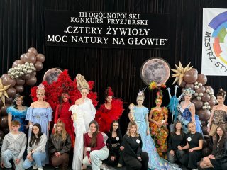 Szczególnym powodem do dumy jest sukces naszej uczennicy – Kingi Harmidy z klasy 3 TF, która wraz z modelką Katarzyną Bogdanowicz zdobyła wyróżnienie oraz nagrodę specjalną. Ich praca zachwyciła jury dopracowanymi detalami, spójnością koncepcji oraz wyjątkowym wyczuciem tematu „Moc natury na głowie”. To osiągnięcie jest dowodem na wysoki poziom przygotowania zawodowego oraz zaangażowanie uczniów w rozwijanie swoich pasji.