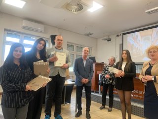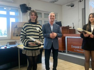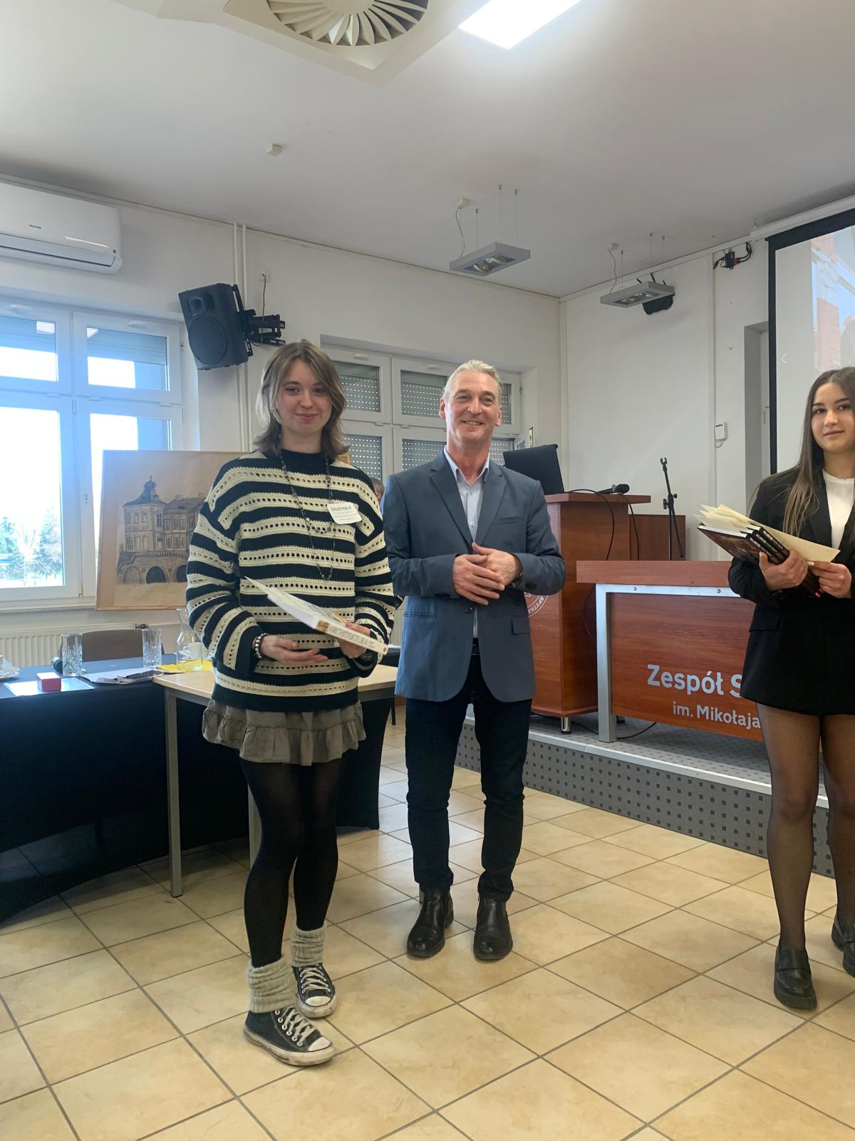 Druga drużyna: Danylo Palashchuk, Zakhar Palashchuk i Magdalena Szczerpakowska również została doceniona. Magda otrzymała nagrodę za wykonanie najlepszego szkicu. Opiekunem była p. Anna Kraczowska-Baednarz.