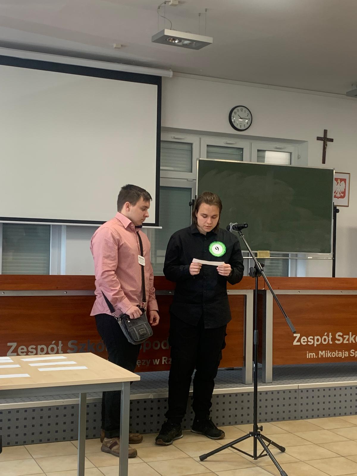 Jury, po podliczeniu punktów za wszystkie kategorie, postanowiło przyznać drugie miejsce drużynie w składzie: Julia Dzido, Bartłomiej Gołąb i Aleksandra Polańska. Opiekun: p. Iwona Małek.