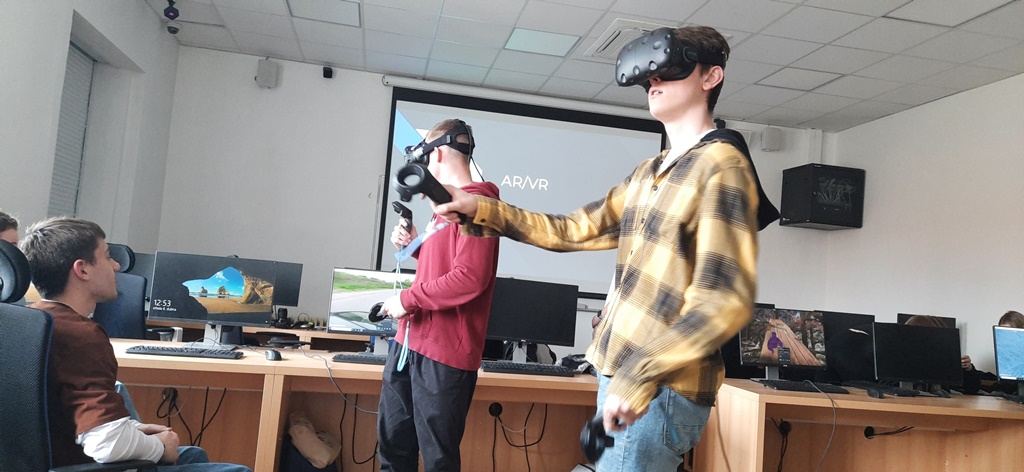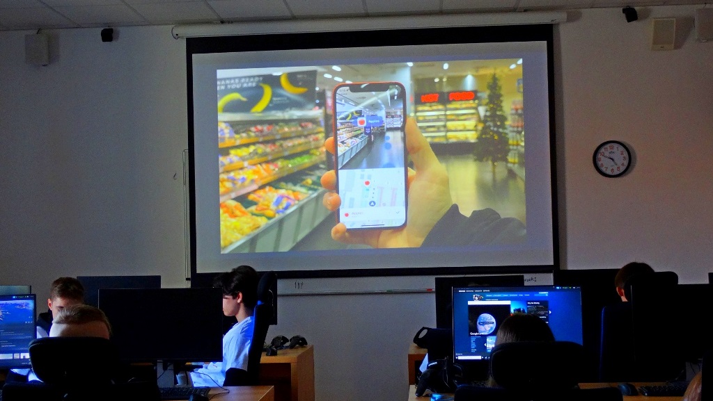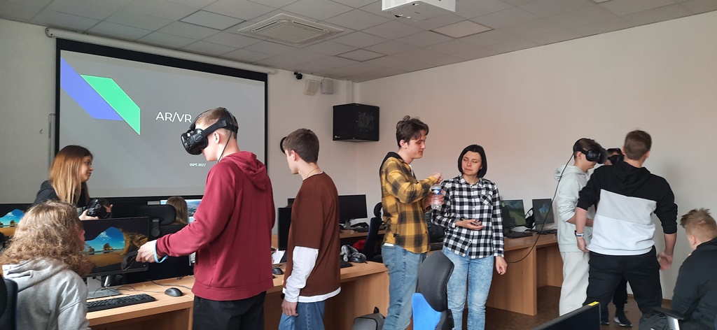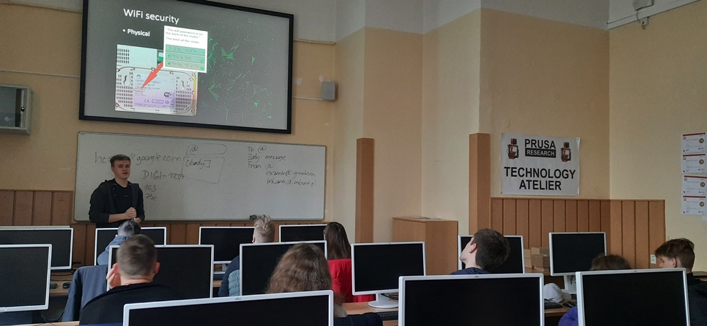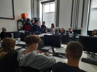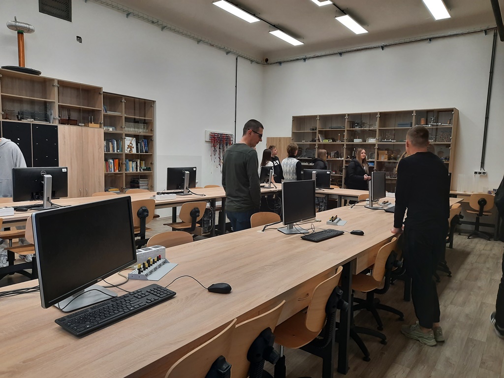 Zwiedzaliśmy też pracownie, w których odbywają się zajęcia z wykorzystaniem nowoczesnych technologii cyfrowych, takich jak: tworzenie aplikacji, rzeczywistość wirtualna i rozszerzona, cyberbezpieczeństwo, multimedia, internet rzeczy, robotyka i aplikacje internetowe.