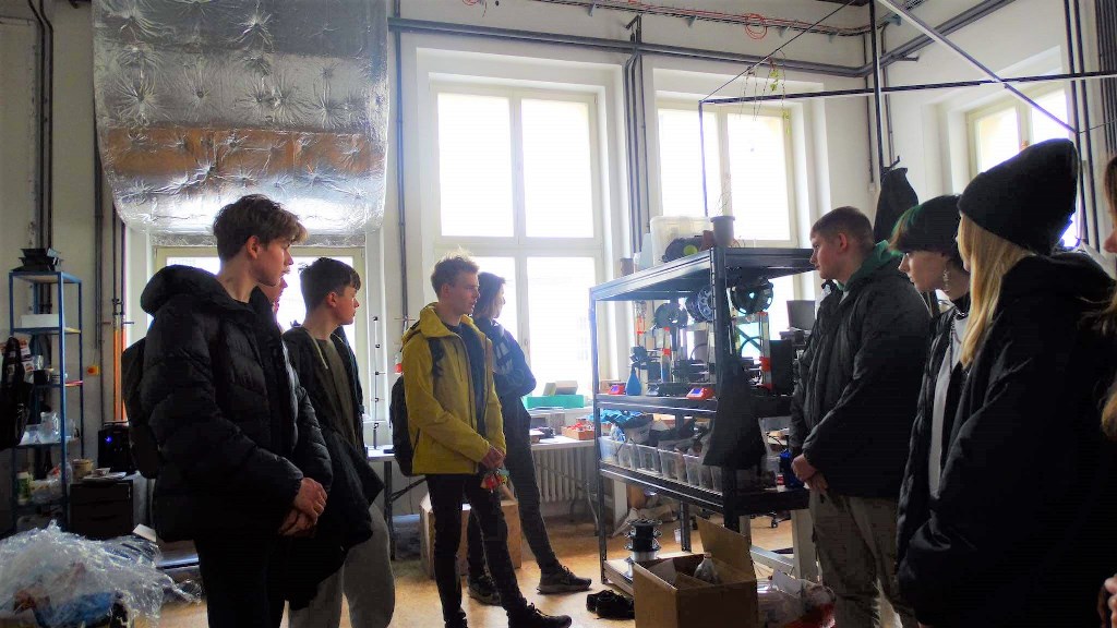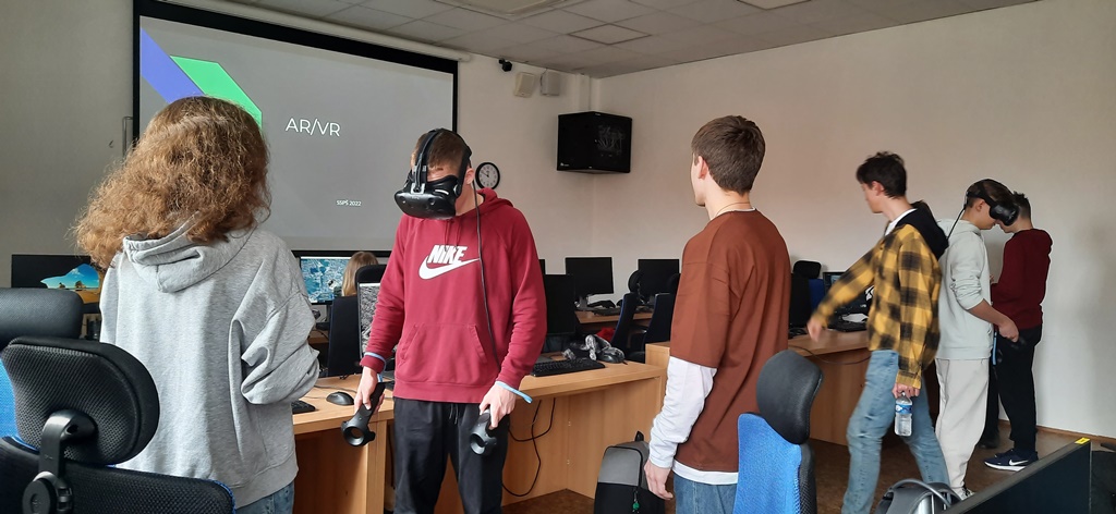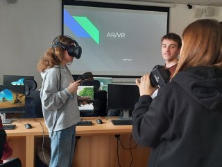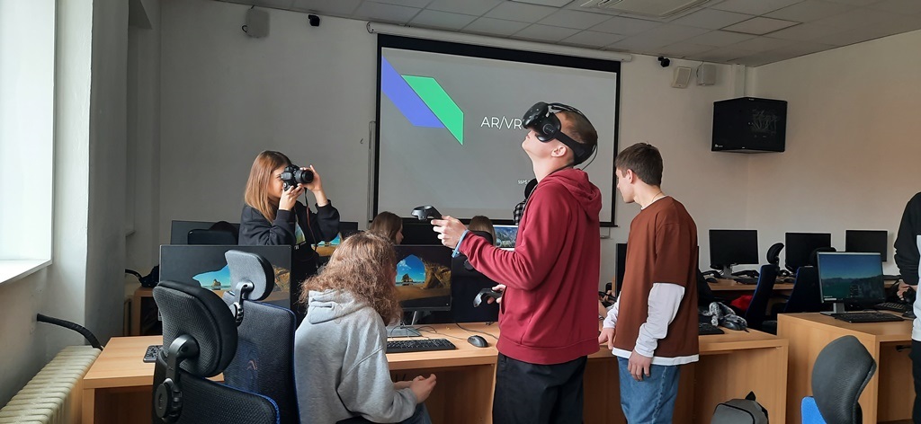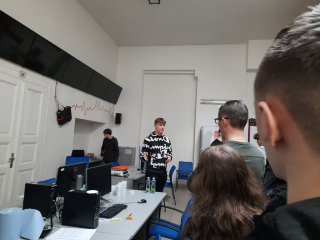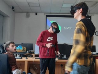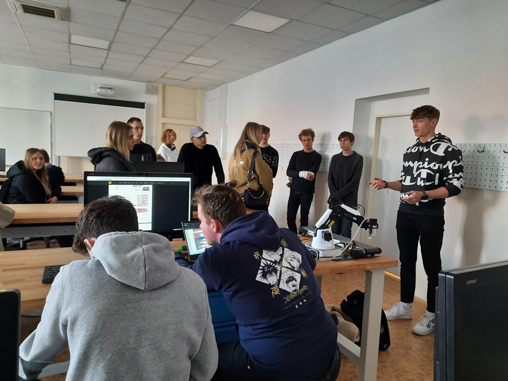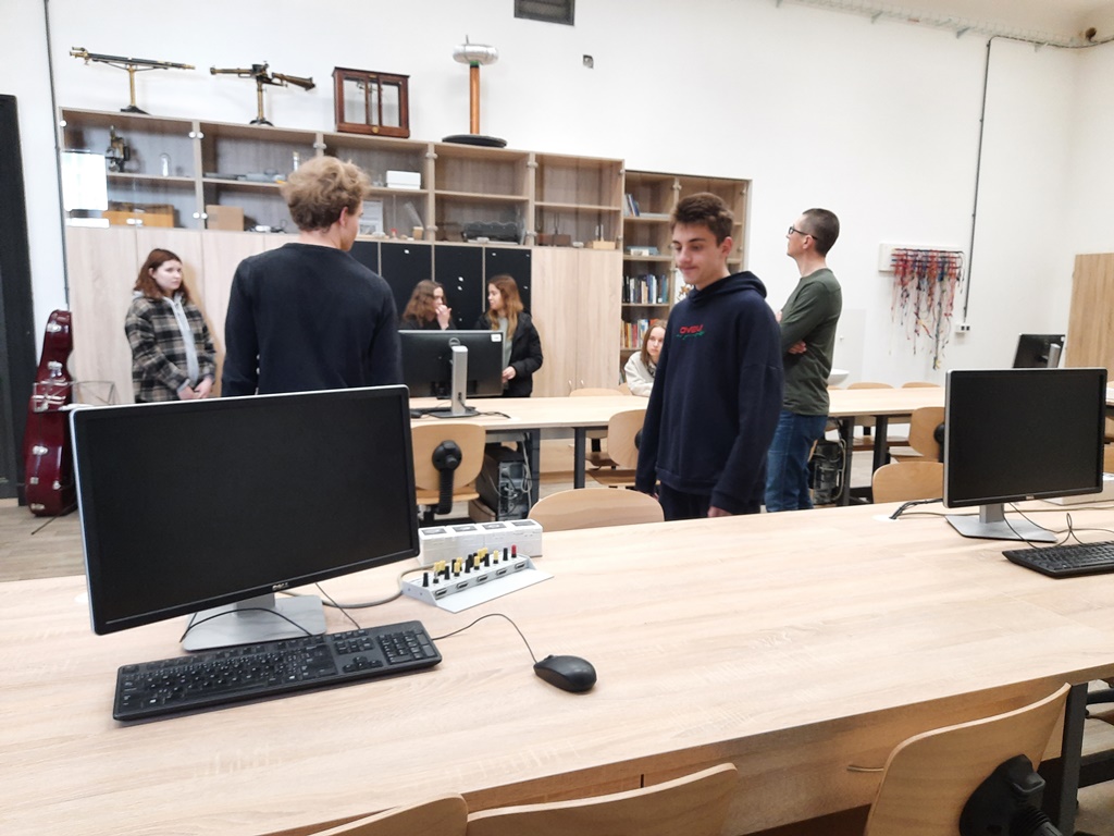 Zwiedzaliśmy też pracownie, w których odbywają się zajęcia z wykorzystaniem nowoczesnych technologii cyfrowych, takich jak: tworzenie aplikacji, rzeczywistość wirtualna i rozszerzona, cyberbezpieczeństwo, multimedia, internet rzeczy, robotyka i aplikacje internetowe.