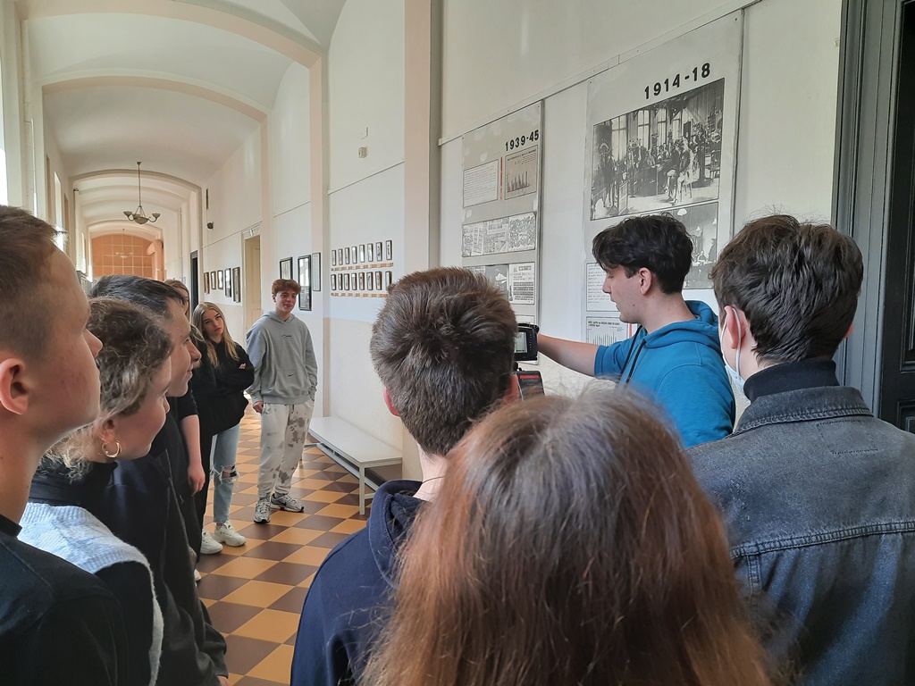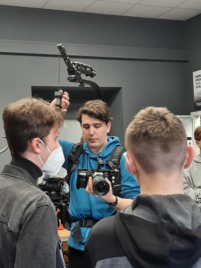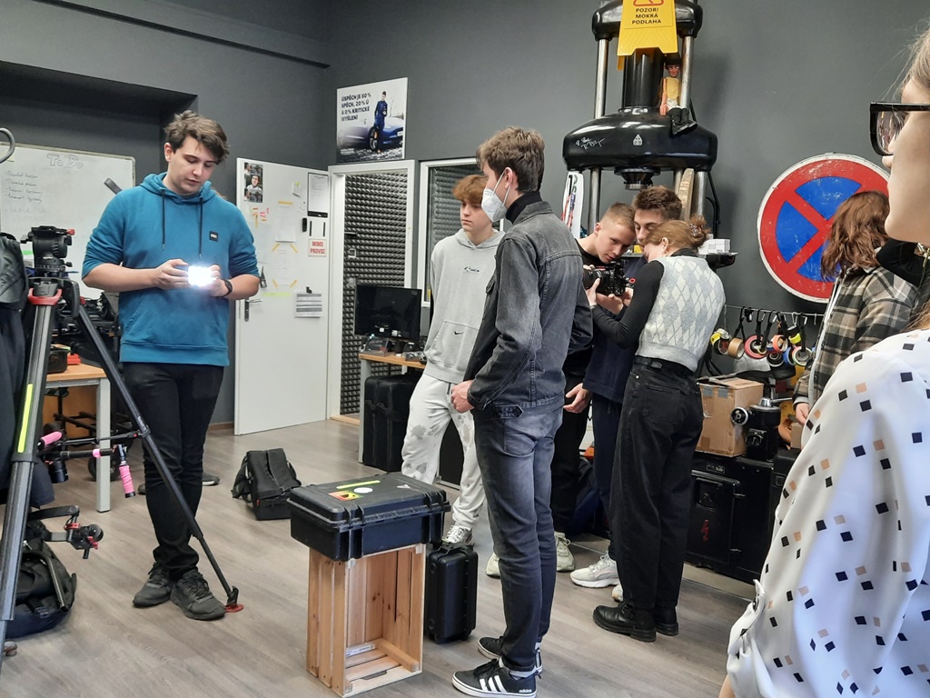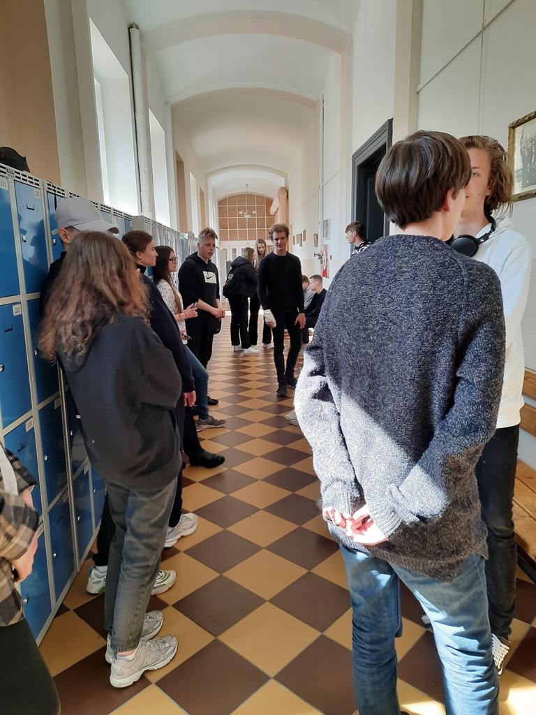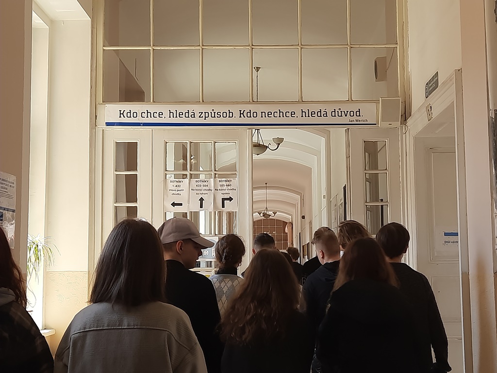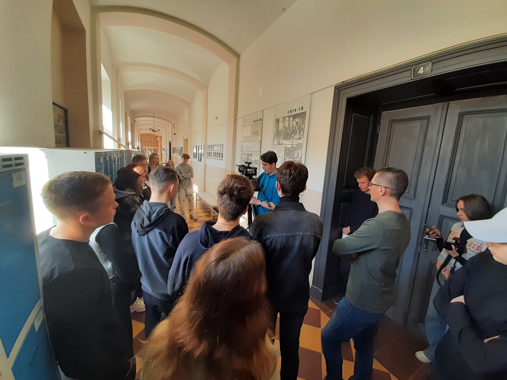 Zwiedziliśmy całą szkołę wraz z grupą czeskich uczniów zaangażowanych w projekt, a następnie odbyło się oficjalne spotkanie z dyrektorem szkoły, panem inż. Radko Sablík oraz koordynatorem projektu, którym jest p. Jakub Jarolimek i p. Ondřej Kadleček.