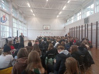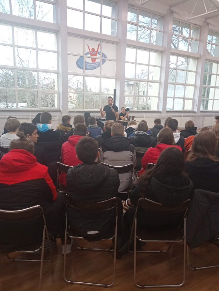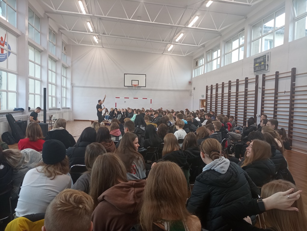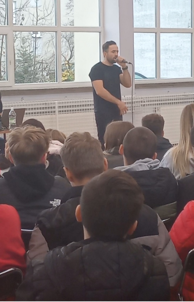 W poniedziałek 21.11.2022 r. uczniowie naszej szkoły wzięli udział w Programie Profilaktyki Uzależnień „Antymina- nie daj się wysterować na minę”, którego autorem i wykonawcą jest raper „Kolah” Mirosław Kolczyk.