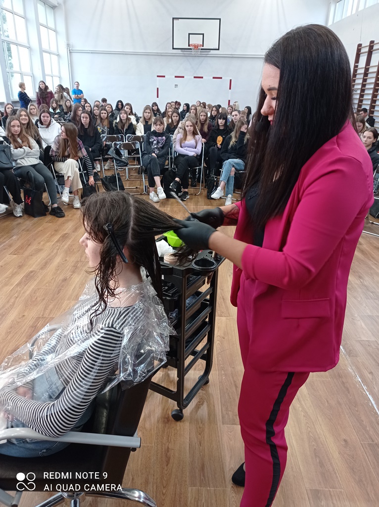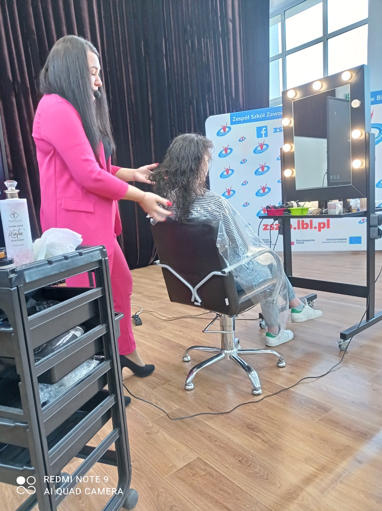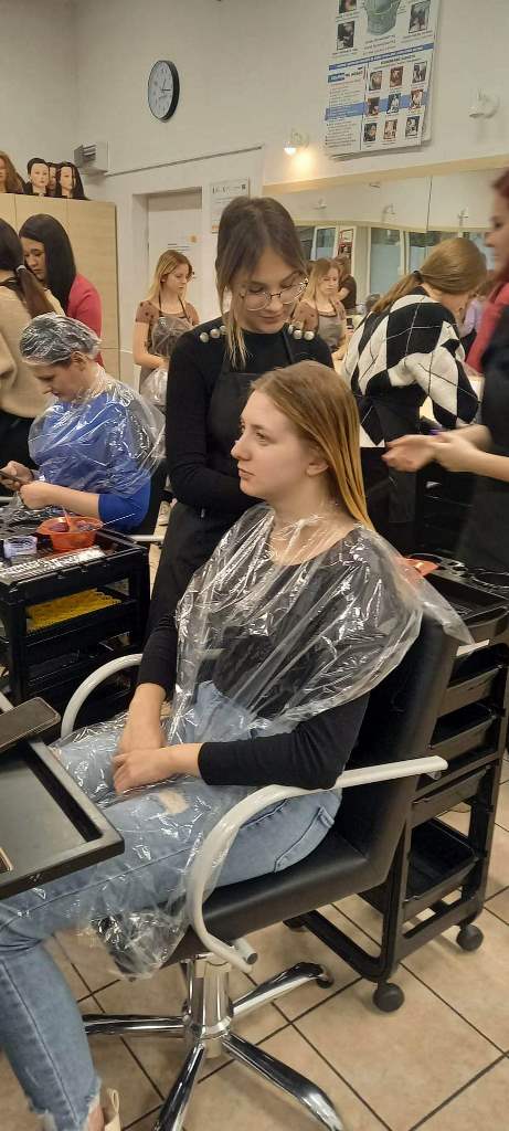 29 listopada do naszej szkoły przyjechała profesjonalistka w tym temacie, zawodowy fryzjer i szkoleniowiec pani Katarzyna Maczała. Pani Katarzyna wyjaśniła naszym uczniom od podstaw na czym te zabiegi polegają, do jakiego typu włosów dobrać odpowiedni zabieg, jakich kosmetyków należy używać, jak dbać o włosy po tego typu zabiegach i zaprezentowała je na modelkach. W trakcie pokazu uczniowie mieli możliwość współpracować z p. Katarzyną i spróbować swoich sił przy wykonywaniu zabiegów. Po pokazie grupa uczniów przeszła gruntowne szkolenie w zakresie wykonywania zabiegów keratynowego prostowania, nanoplastii, bioplastii i Botoxu na włosy. Pod czujnym okiem specjalisty wykonywały odpowiedni zabieg na modelkach a uwieńczeniem ich pracy było ogromne zadowolenie z efektów jakie uzyskały i certyfikat ukończenia szkolenia.