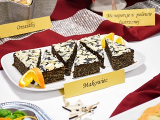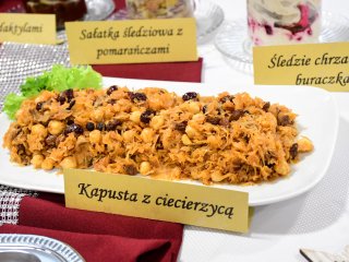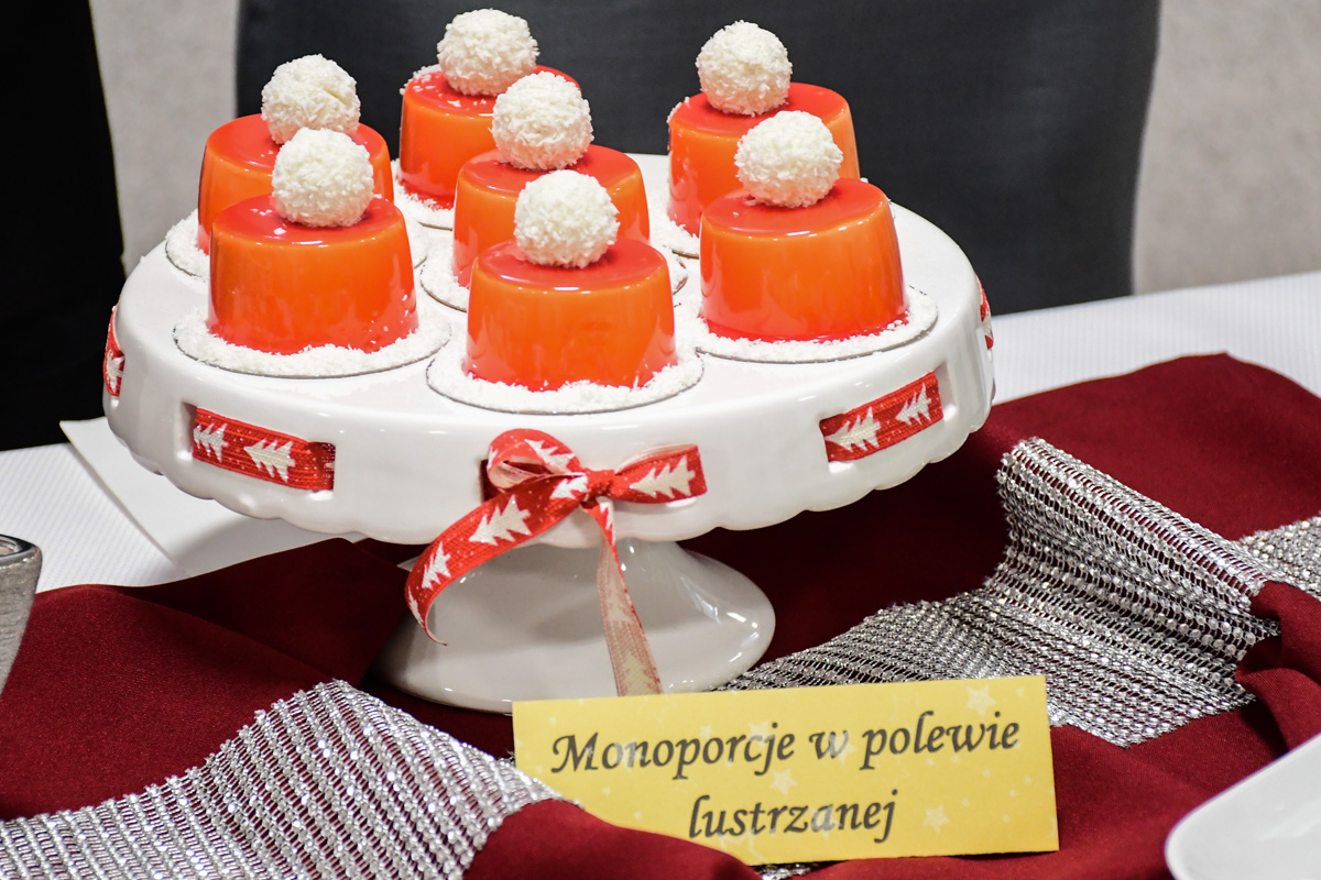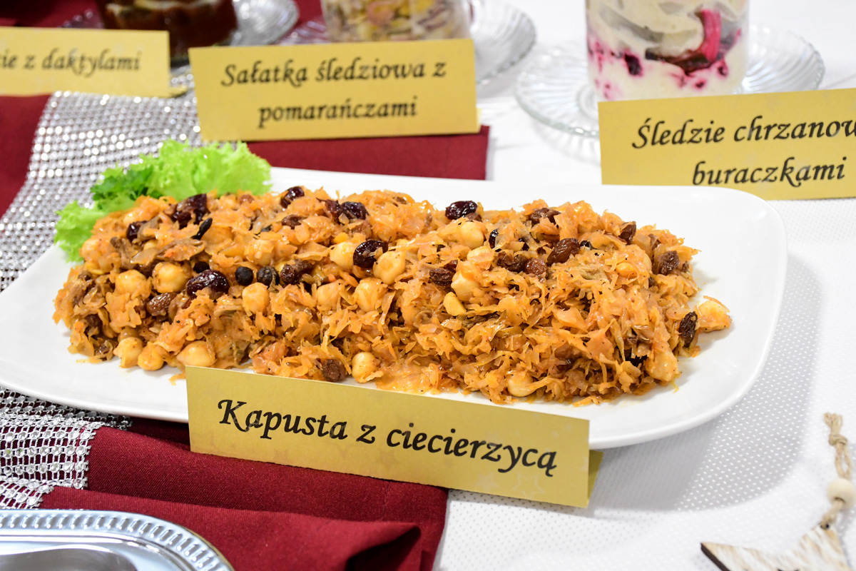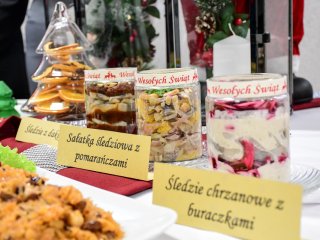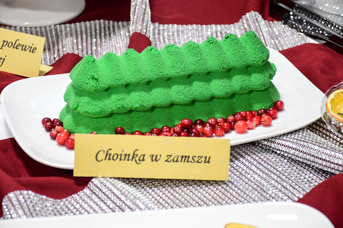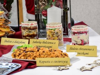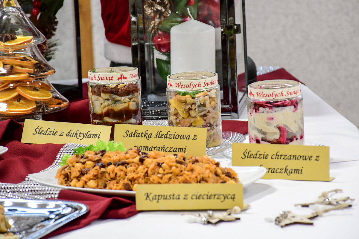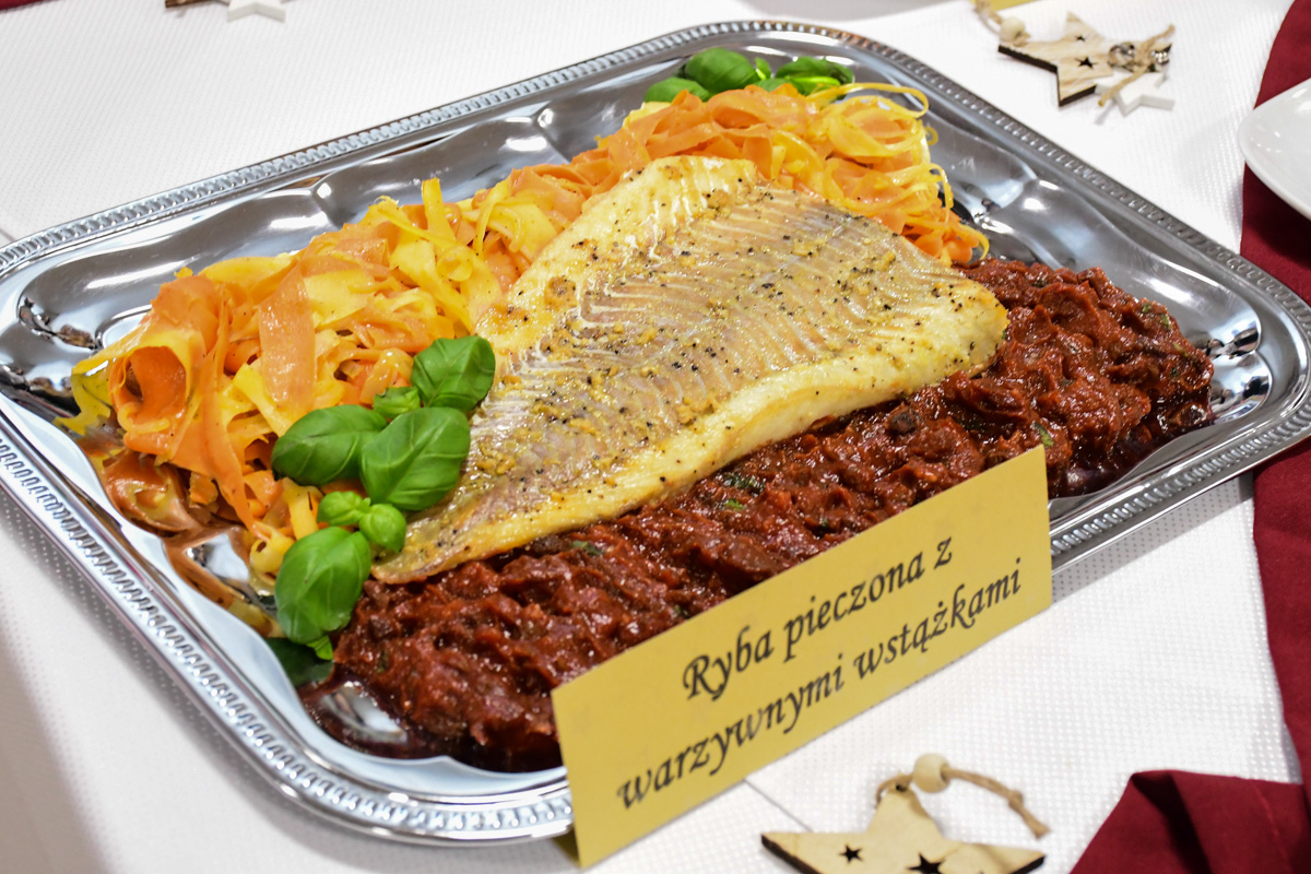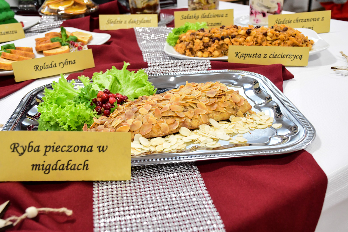 Na świątecznym stole zagościły takie potrawy jak terrina rybna, rolada rybna, rolada z łososiem, kapusta z ciecierzycą, ryba pieczona w migdałach, ryba pieczona z warzywnymi wstążkami, sałatka śledziowa z pomarańczami, śledzie chrzanowe z buraczkami, śledzie z daktylami nie zabrakło tradycyjnego makowca, orzeszków oraz nowoczesnego cukiernictwa m.in. choinka w zamszu, monoporcje w lustrzanej polewie.