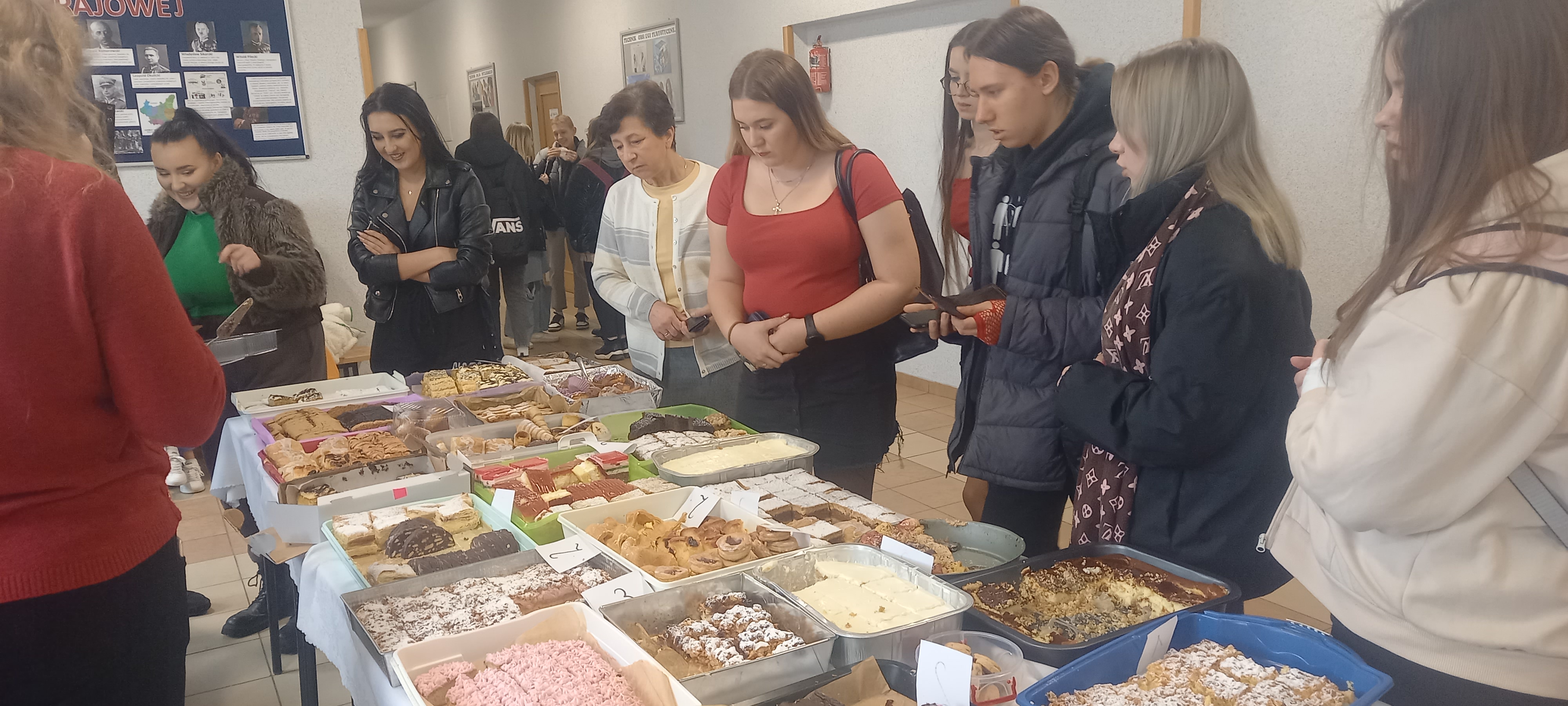 Każdy za symboliczną kwotę mógł kupić dużą porcję ulubionego ciasta. Najistotniejszy jest jednak fakt, że uzyskane ze sprzedaży słodkości pieniądze przeznaczone zostaną na wsparcie Funduszu ZSZiO "Szansa na rozwój uczniów", z którego środków na bieżąco korzystają uczniowie np. podczas organizowania wycieczek na targi branżowe (gastronomiczne, fryzjerskie, tekstylne czy turystyczne) do stolicy lub innych ośrodków.
