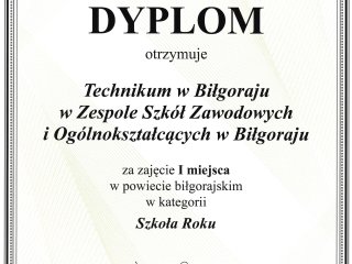 Technikum w Zespole Szkół Zawodowych i Ogólnokształcących w Biłgoraju uzyskało I miejsce w kategorii Szkoła Roku w powiecie biłgorajskim w plebiscycie „Kuriera Lubelskiego”. Zwycięzców wyłoniło głosowanie czytelników. Celem plebiscytu edukacyjnego „Kuriera Lubelskiego” było nagrodzenie najlepszych nauczycieli oraz szkół na szczeblu powiatowym i wojewódzkim.