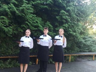 Uczniowie Technikum usług kelnerskich pomagali w przygotowaniu uroczystości szkolnej w SP Nr 1 w Biłgoraju....