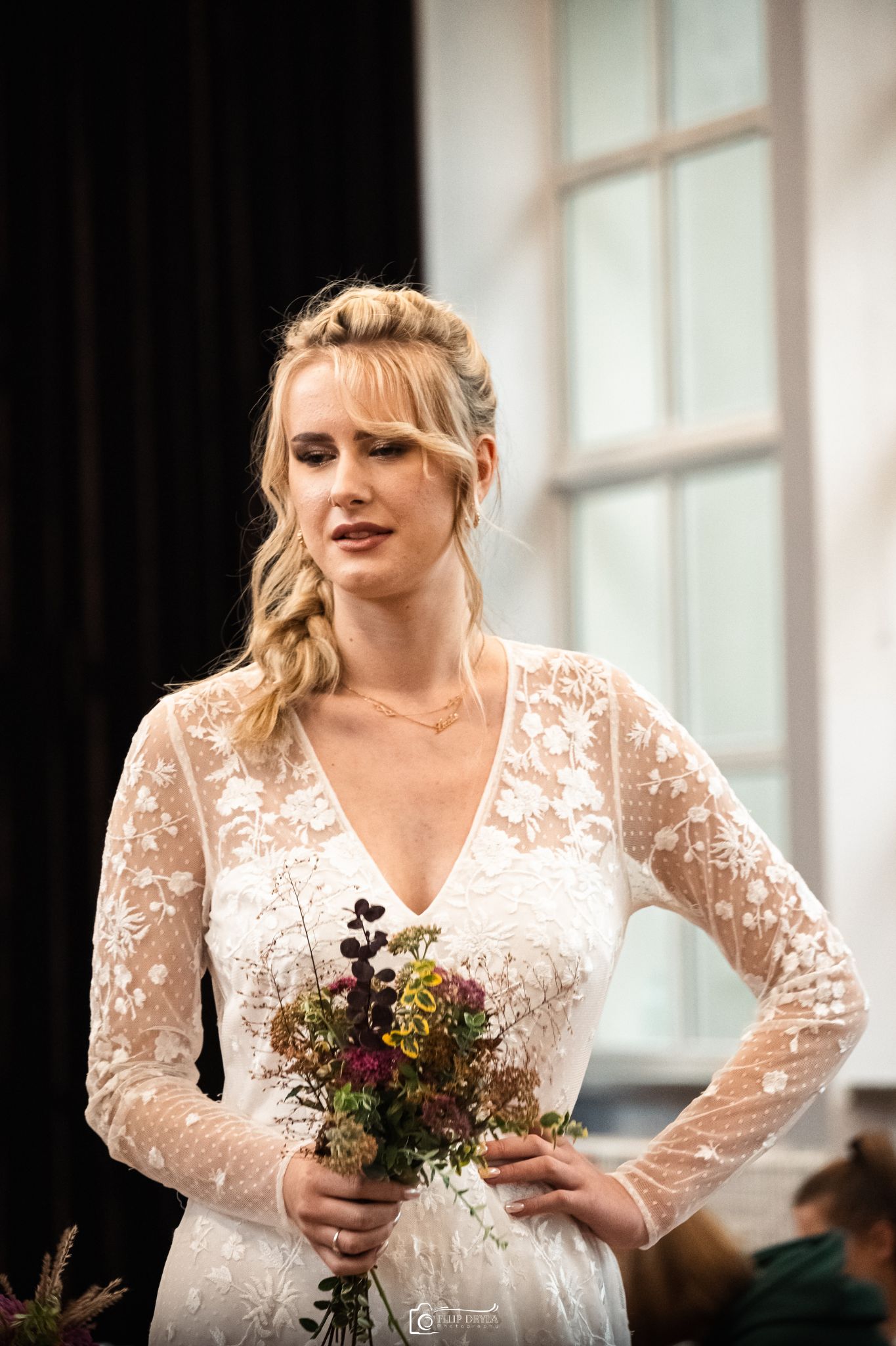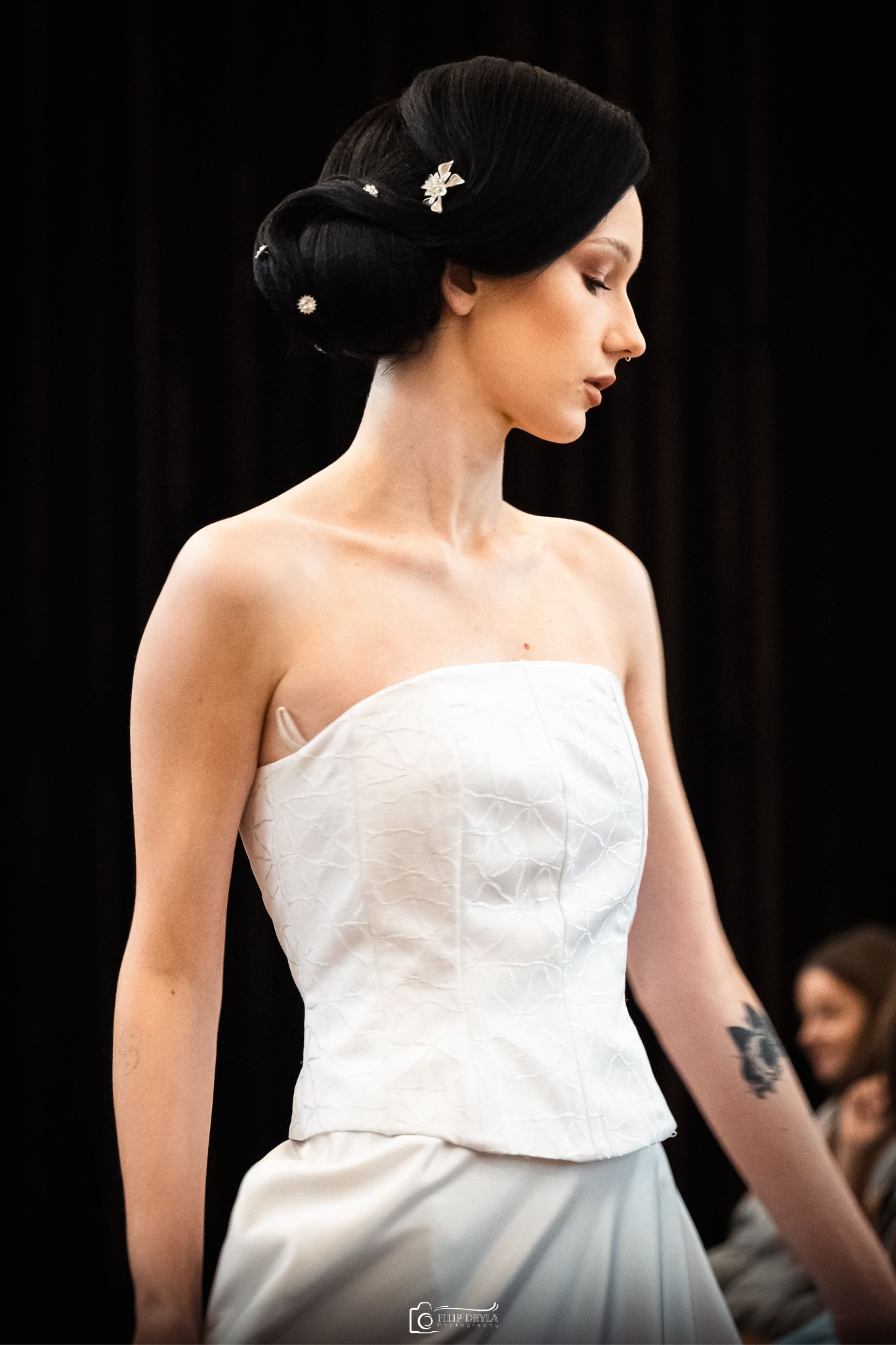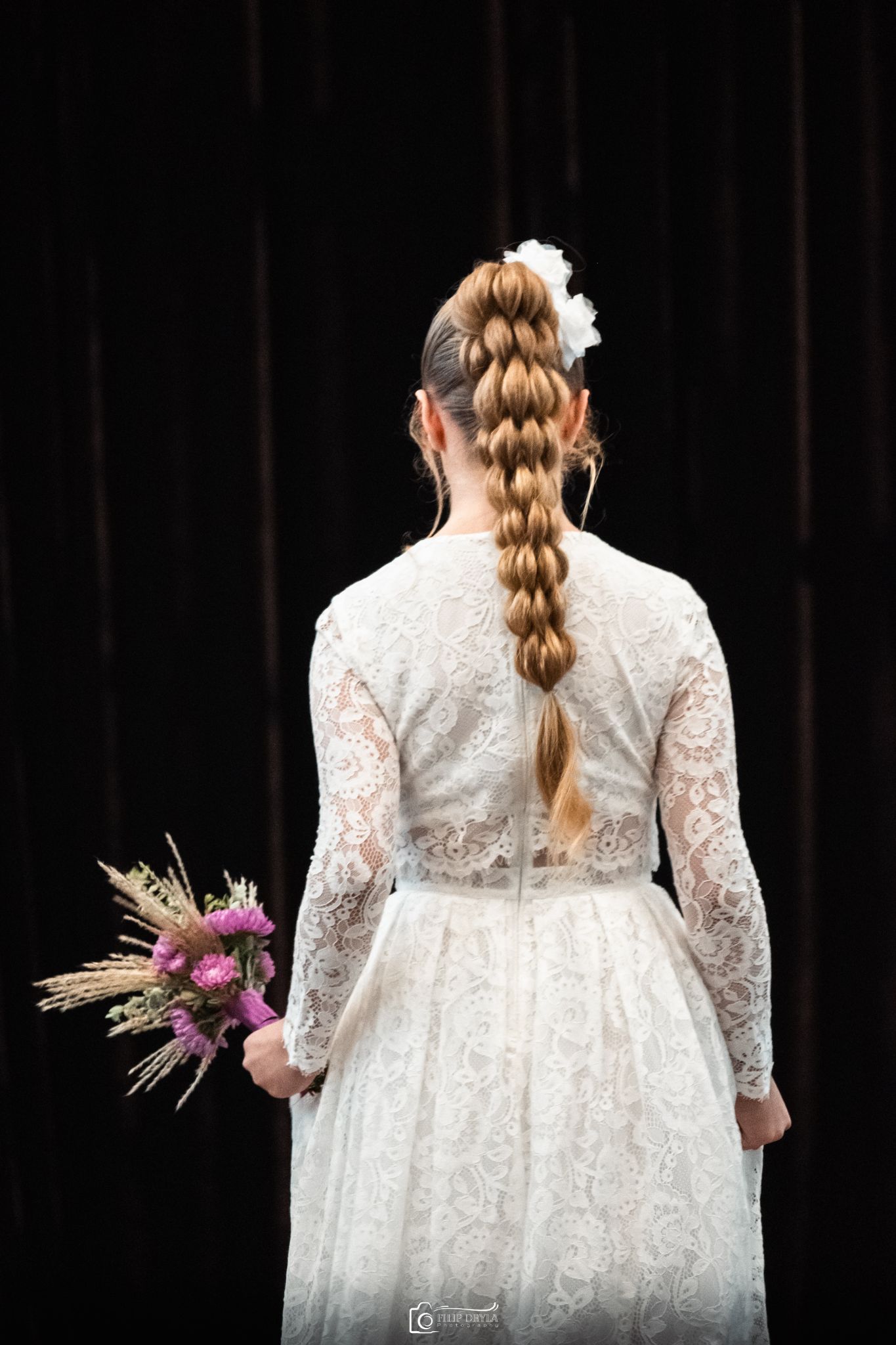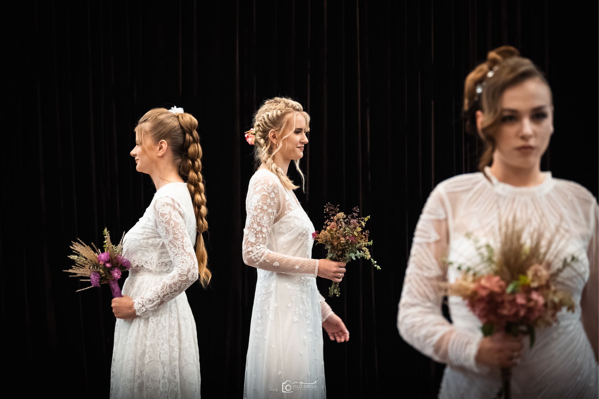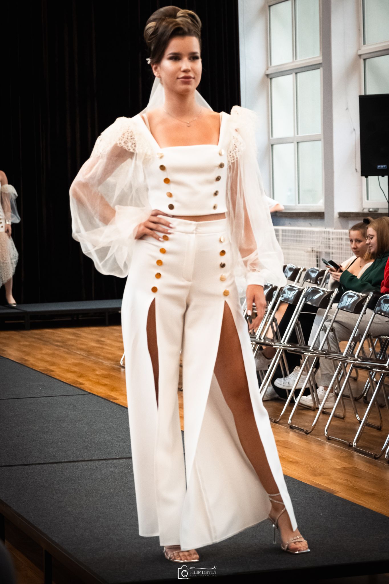Uczniowie dołożyli wszelkich starań, aby każda modelka wystąpiła w innym uczesaniu, starannie dobranym makijażu oraz sukni. Dopasowanie tych elementów jest kluczowe dla stworzenia spójnego i harmonijnego wyglądu, a fryzura jest ważnym elementem i powinna być dopełnieniem całej stylizacji. Dobrze dobrana i starannie wykonana fryzura podkreśli urodę panny młodej i doda pewności siebie w tym jakże ważnym dniu. Do prostych, minimalistycznych sukien ślubnych pasują proste i klasyczne upięcia, natomiast do kreacji typu „princess” niezawodne będą fryzury w stylu romantycznym, które sprawiają, że cała stylizacja nabiera powabu i czaru.