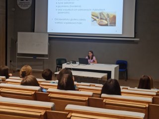 Wydział Lekarski Uniwersytetu Medycznego przedstawił prezentację pt. „Kiedy moda a kiedy konieczność - o diecie bezglutenowej słów kilka”. Obecnie coraz więcej osób wybiera dietę bezglutenową, często bez szczególnych wskazań medycznych i bez konsultacji z lekarzem czy dietetykiem. Uczniowie mieli okazję dowiedzieć, kiedy taką dietę należy stosować i jakie są jej zalecenia.