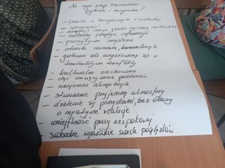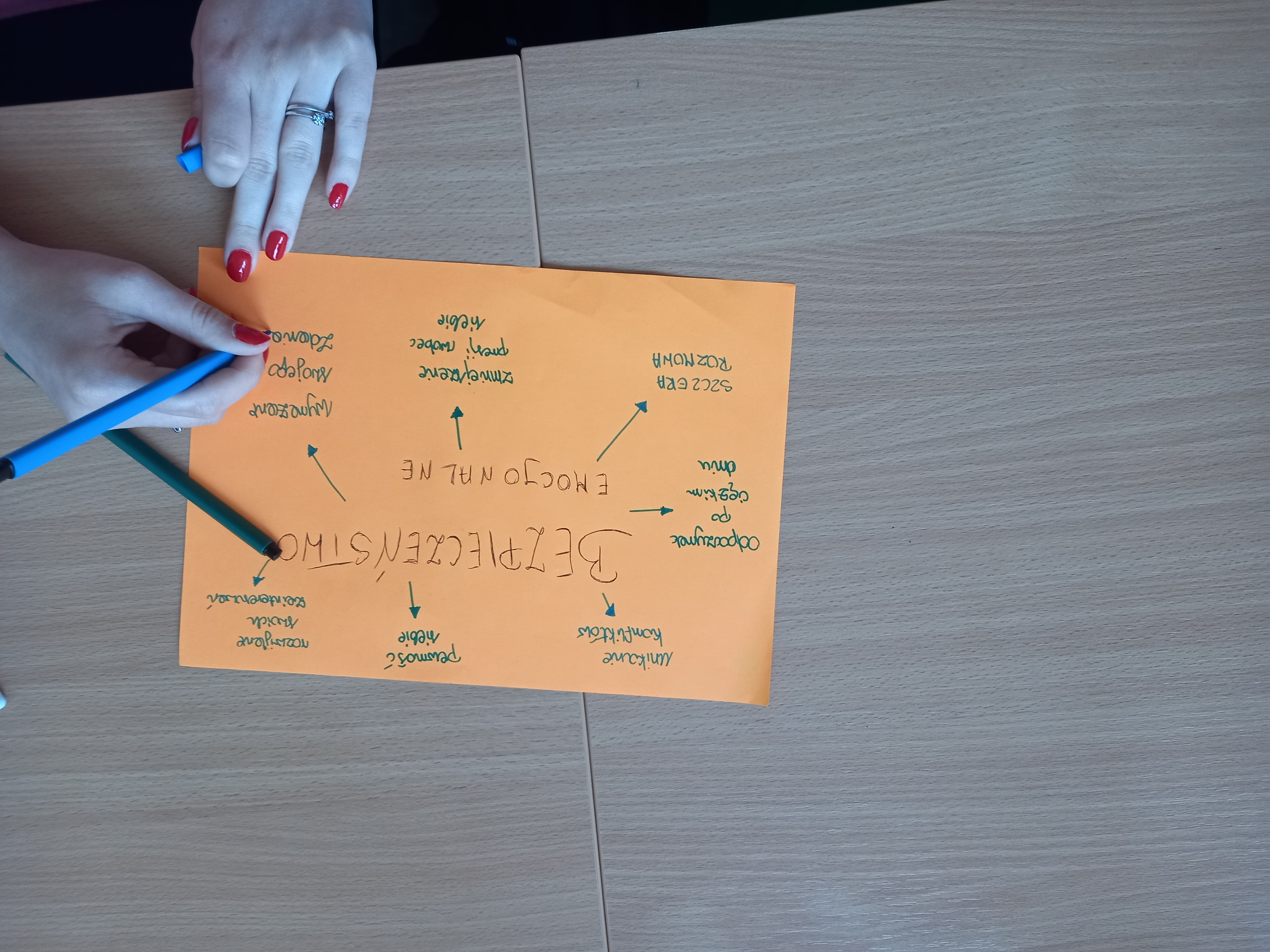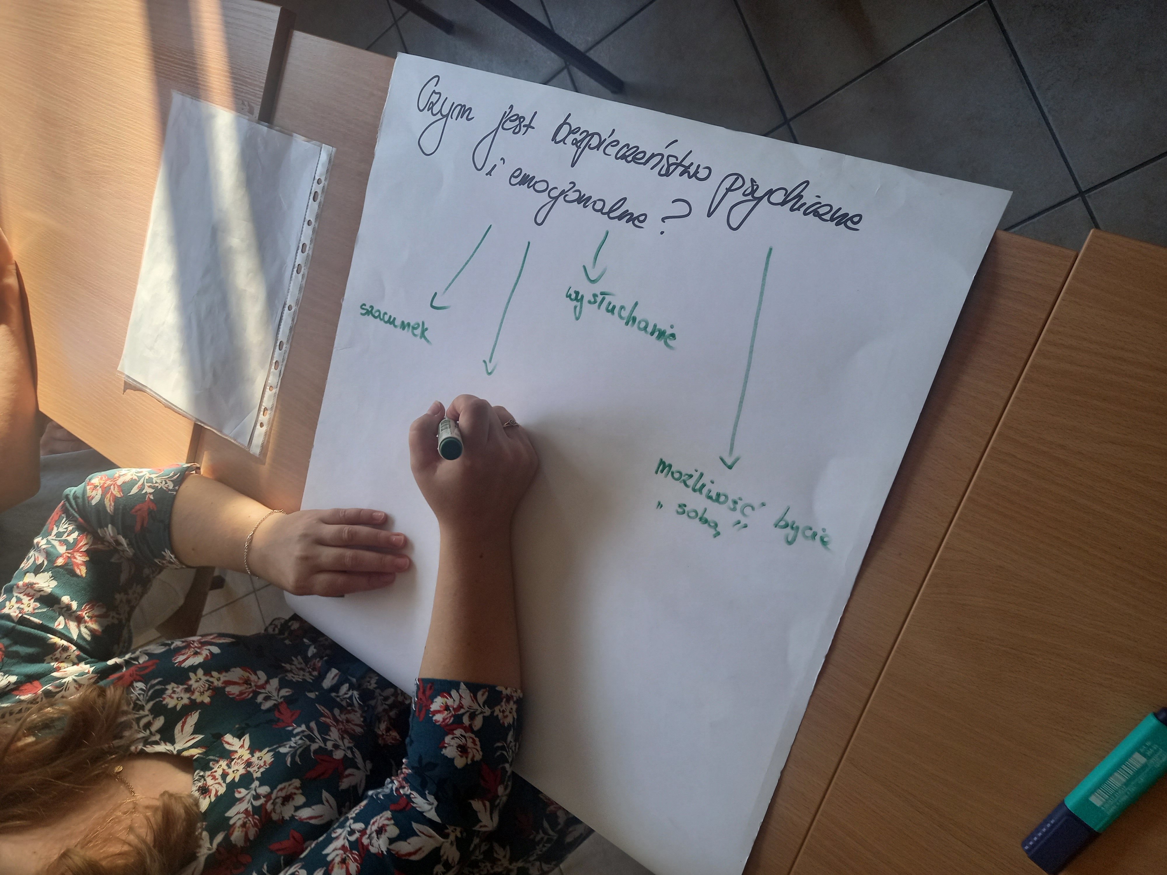 Grupa 20 nauczycieli uczestniczyła warsztatach prowadzonych przez psychologa szkolnego Joannę Cudziło-Gil dotyczące bezpieczeństwa psychicznego i emocjonalnego uczniów w szkole. Warsztaty miały na celu znalezienie odpowiedzi na pytania związane ze zdrowiem psychicznym np. Czym jest bezpieczeństwo psychiczne i emocjonalne ucznia w szkole?, Jak wspólnie możemy poprawić na terenie naszej placówki czynniki wspierające bezpieczeństwo psychiczne i emocjonalne dziecka? Podczas tego spotkania nauczyciele stworzyli ,,mapę myśli” – zbiór pomysłów i wskazówek jak dbać o zdrowie psychiczne naszych uczniów w szkole.