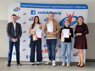 Uczniowie naszej szkoły z klasy II TR (technik reklamy) zakończyli udział w ogólnopolskim konkursie „Mistrzostwa Biznes i Zarządzanie”. Skład drużyny: Zuzanna Goch, Bartłomiej Gołąb i Alicja Koneczny. Uczniowie zajęli 3 miejsce w grupie.