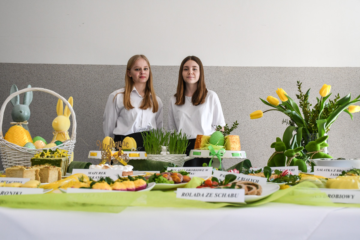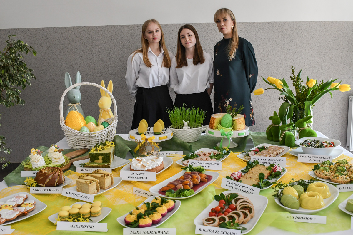 Młodzież włożyła dużo pracy i serca w przygotowanie potraw i wyrobów cukierniczych, które pozwoliły wprawić całą społeczność szkolną oraz uczniów klas ósmych Szkół Podstawowych goszczących w naszej szkole w atmosferę Świąt Wielkanocnych.