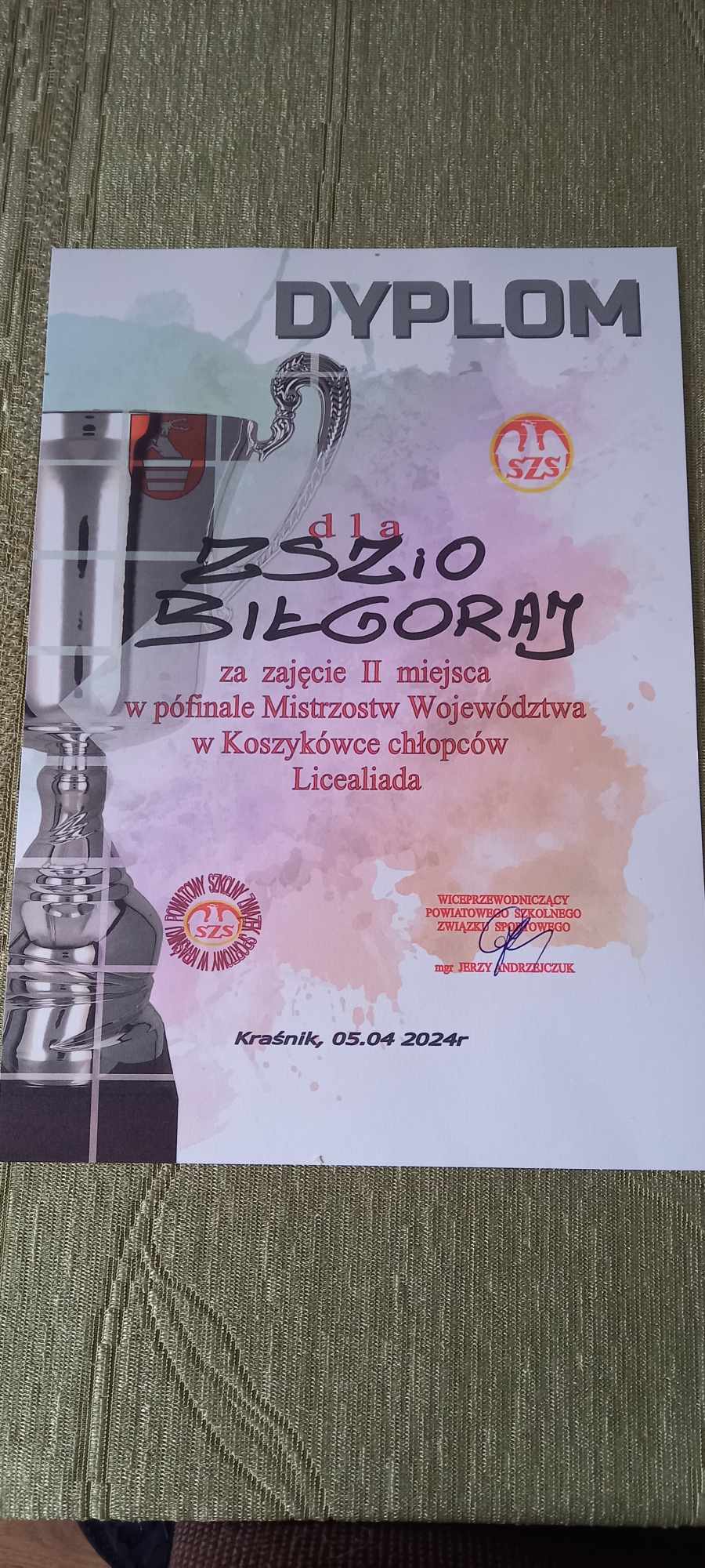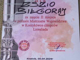Po zwycięstwie w Powiatowej Licealiadzie w koszykówce chłopców drużyna ZSZiO po świątecznej przerwie udała się do Krasnika na Półfinał Wojewódzki. W turnieju który odbył się 5 kwietnia udział wziely trzy najlepsze drużyny z rejonu: ZSCKR Potoczek, I LO " Górka " Krasnik oraz ZSZiO Biłgoraj.