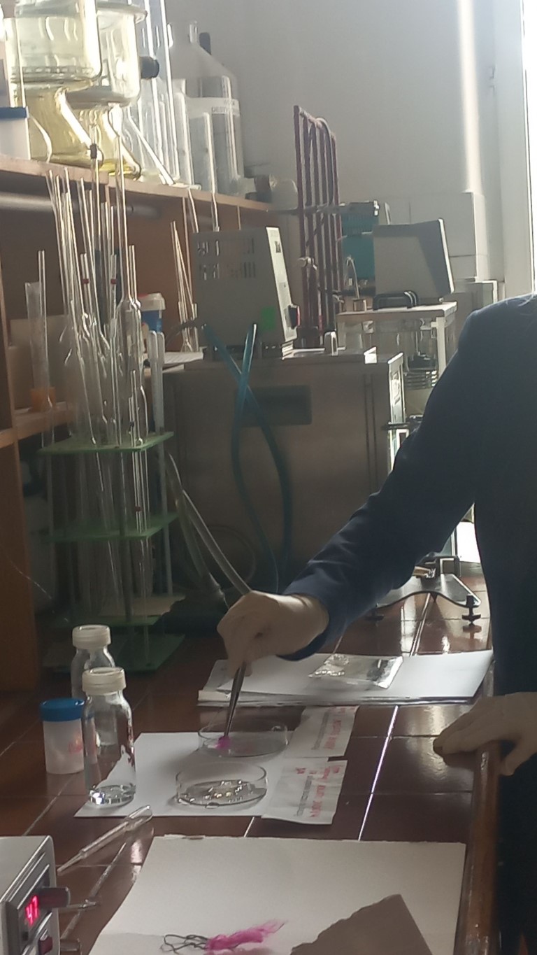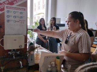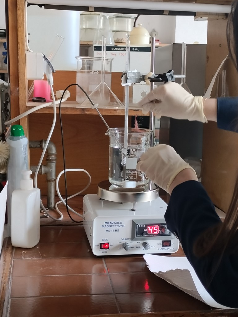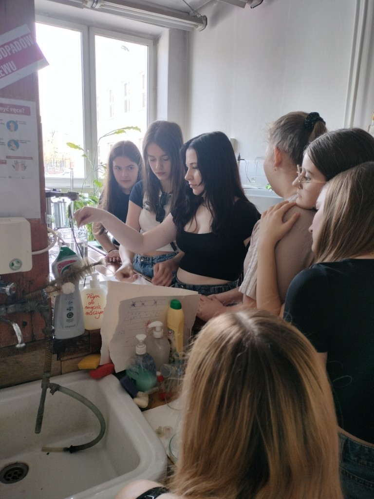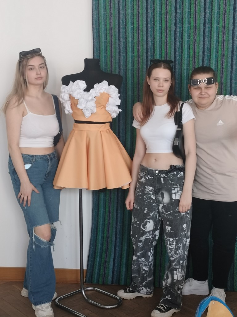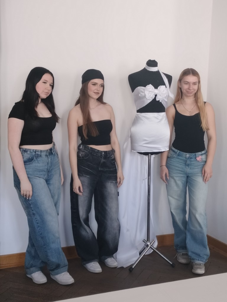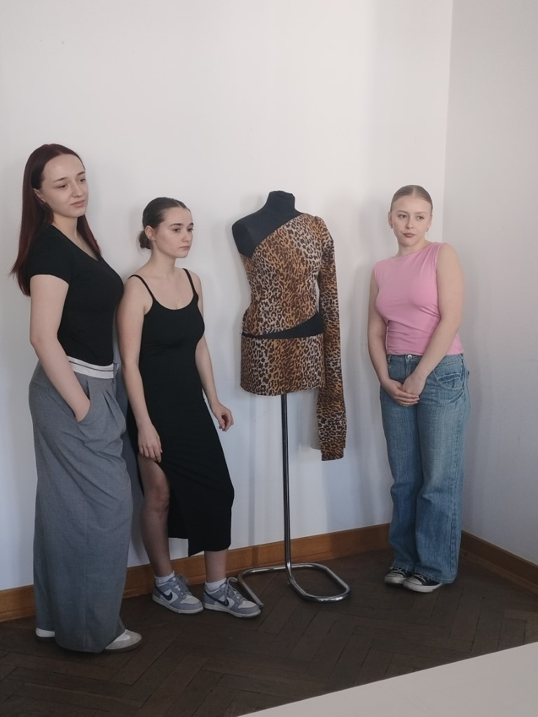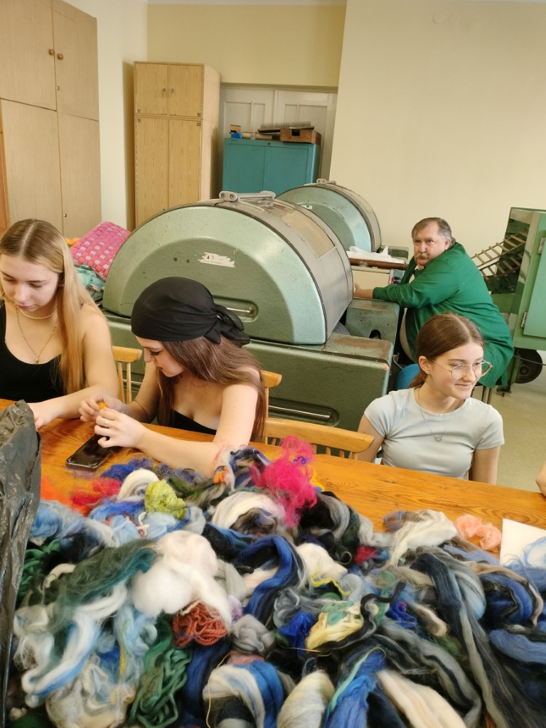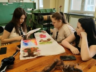Już w pierwszym dniu odwiedziliśmy najstarszą w Polsce fabrykę nici ARIADNA, gdzie zapoznaliśmy się z procesem produkcyjnym całego asortymentu nici oraz historią zakładu. Drugi dzień to niezwykle interesujące warsztaty na Politechnice Łódzkiej, na zaprzyjaźnionym Wydziale Technologii Materiałowych i Wzornictwa Tekstyliów. Pierwsze zajęcia przeprowadziła z nami Pani dr inż. Emilia Śmiechowicz - zapoznała nas z włóknami funkcjonalnymi, które stosowane są do różnych celów specjalnych, np. włókna jako sensory, magnetyczne, czy włókna alginianowe. Przeprowadzaliśmy ocenę organoleptyczną i mikroskopową włókien specjalnych przy zastosowaniu różnych czynników zewnętrznych wywołujących np. ich zmiany barwne, czy strukturalne. Dając popis naszym talentom wzorniczym, pod okiem dr inż. Marka Idzika wykonaliśmy włókninę techniką igłowania. Kolejne zajęcia to już część artystyczna naszego zawodu. Dr inż. Elżbieta Radaszewska wprowadziła nas w tajniki zasad projektowania ubioru spersonalizowanego, korzystając z metodologii design thinking. Następnie projektowaliśmy ubiory spersonalizowane na wieczorową okazję przy pomocy manekina i materiałów odzieżowych. Odbywało się to pod czujnym okiem projektantów: dr Aleksandry Wereszki i dr Andrzeja Fodera. W trzecim dniu odwiedziliśmy najlepszą farbiarnię i wykańczalnię odzieży w Łodzi KNK KANAKA. To tutaj powstają najładniej wybarwione jeansy, czy kolorowe T-shirty. Firma szczyci się posiadaniem certyfikatu Global OrganicTextile Standard (GOTS). Wszystkie ubrania poddawane tutaj obróbce są bezpieczne dla nas, a powstałe przy produkcji ścieki i inne odpady nie zagrażają środowisku.