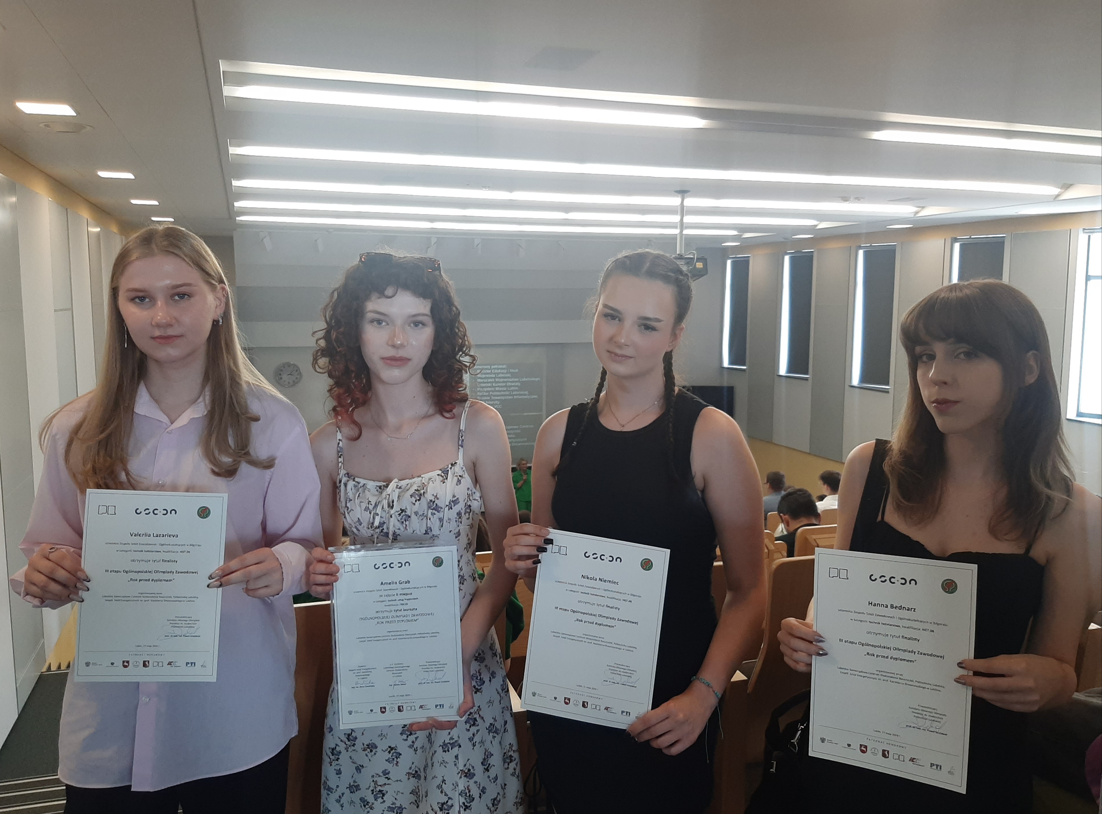Trzy uczennice Technikum hotelarskiego z tytułem finalisty III etapu Ogólnopolskiej Olimpiady Zawodowej „Rok przed dyplomem”, organizowanej przez Lubelskie Samorządowe Centrum Doskonalenia Nauczycieli, Politechnikę Lubelską, Zespół Szkół Energetycznych im. prof. Kazimierza Drewnowskiego w Lublinie.