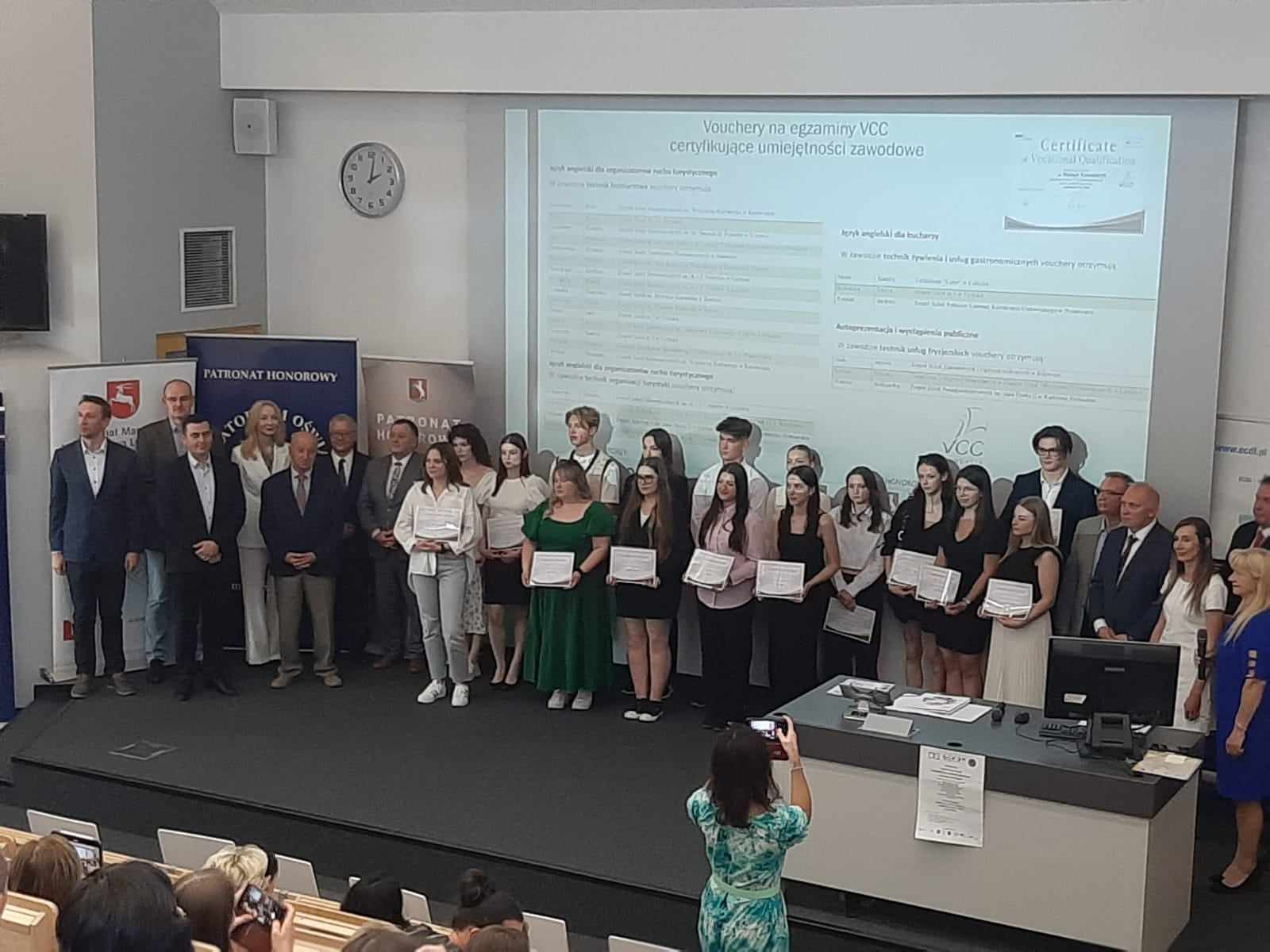 27.05.2024 r. w auli Wydziału Budownictwa i Architektury Politechniki Lubelskiej odbyła się konferencja podsumowująca wyniki Ogólnopolskiej Olimpiady Zawodowej „Rok przed dyplomem”. Wyłoniono 75 laureatów I, II i III miejsca, którym wręczono dyplomy, drobny sprzęt elektroniczny i sportowy ufundowany przez Kuratorium Oświaty w Lublinie i Urząd Marszałkowski. Gratulacje dla uczennicy naszej szkoły Amelii Grab , która otrzymała tytuł laureata II miejsca w zawodzie technik usług fryzjerskich. Olimpiadę honorowym patronatem objęli: Minister Edukacji i Nauki, Wojewoda Lubelski, Marszałek Województwa Lubelskiego, Lubelski Kurator Oświaty, Prezydent Miasta Lublin, Rektor Politechniki Lubelskiej, Polskie Towarzystwo Informatyczne, PKP Intercity, Fundacja VCC.