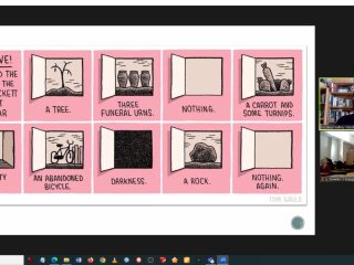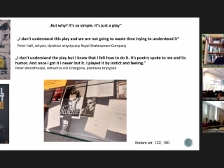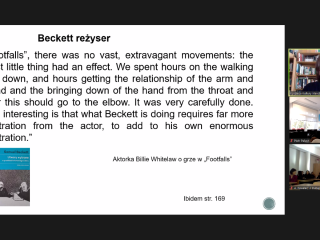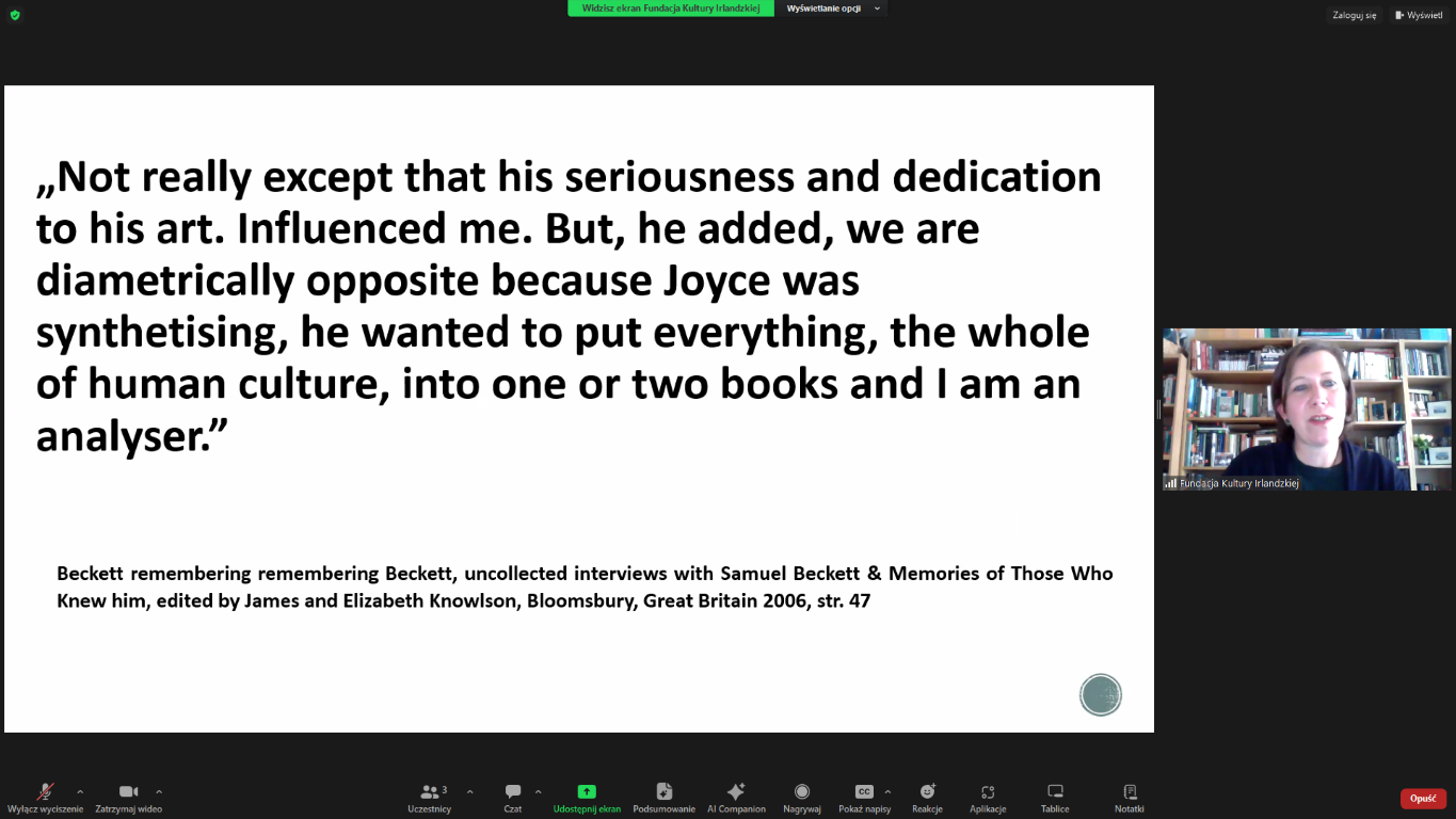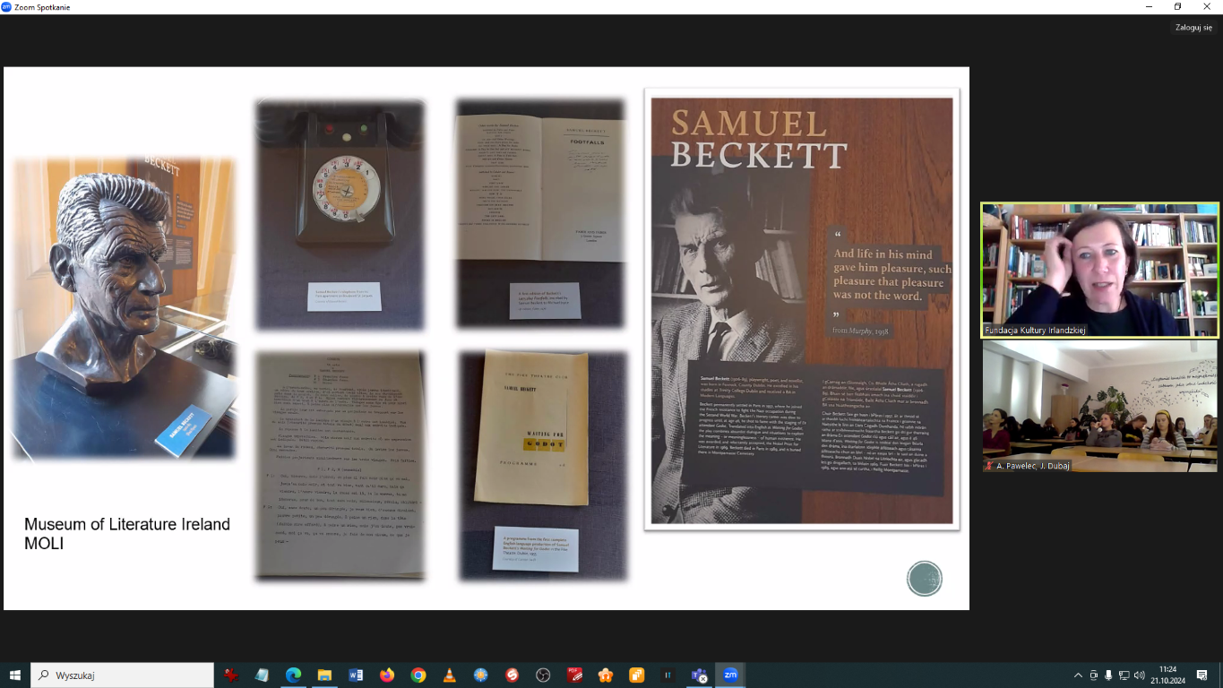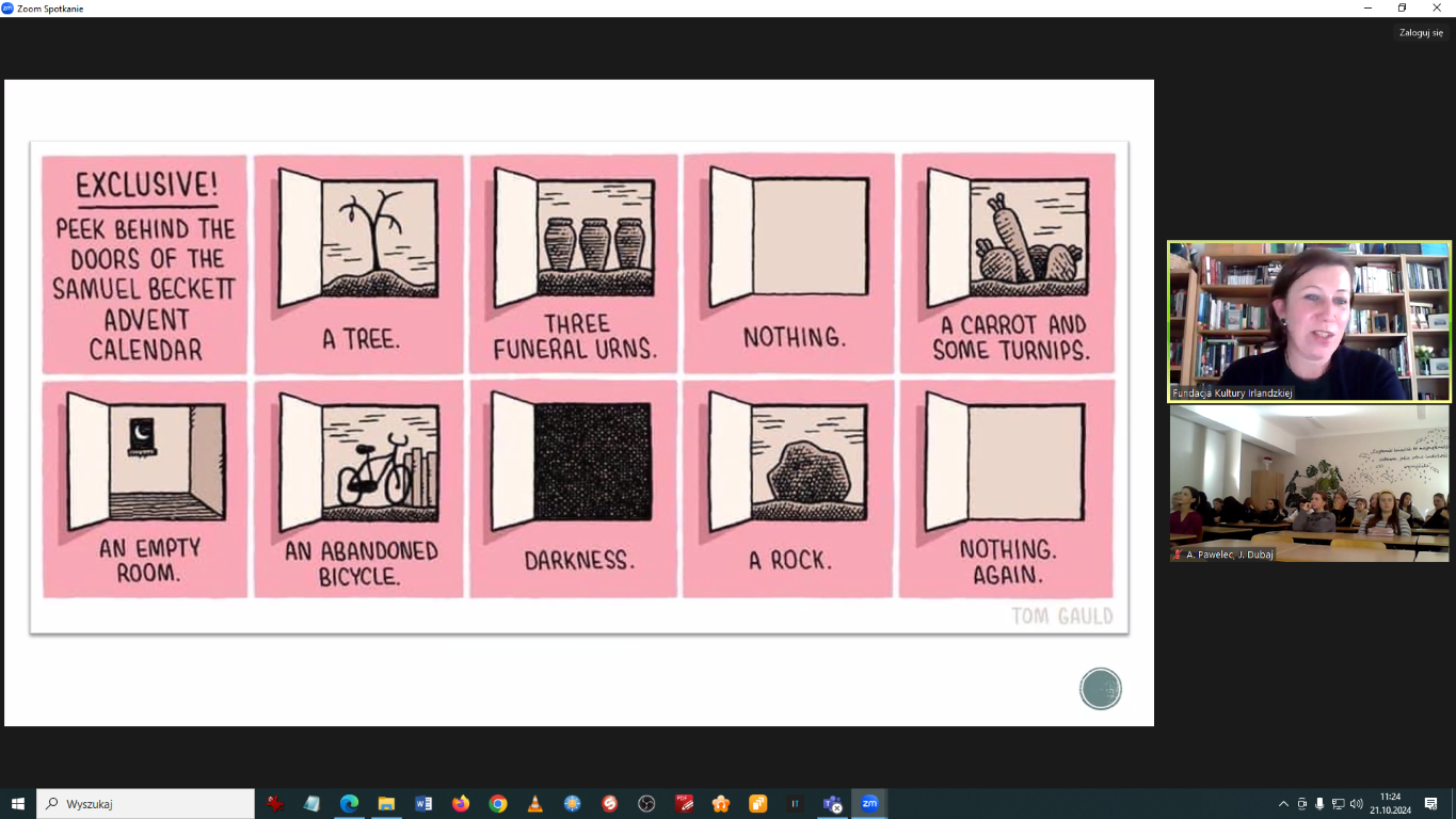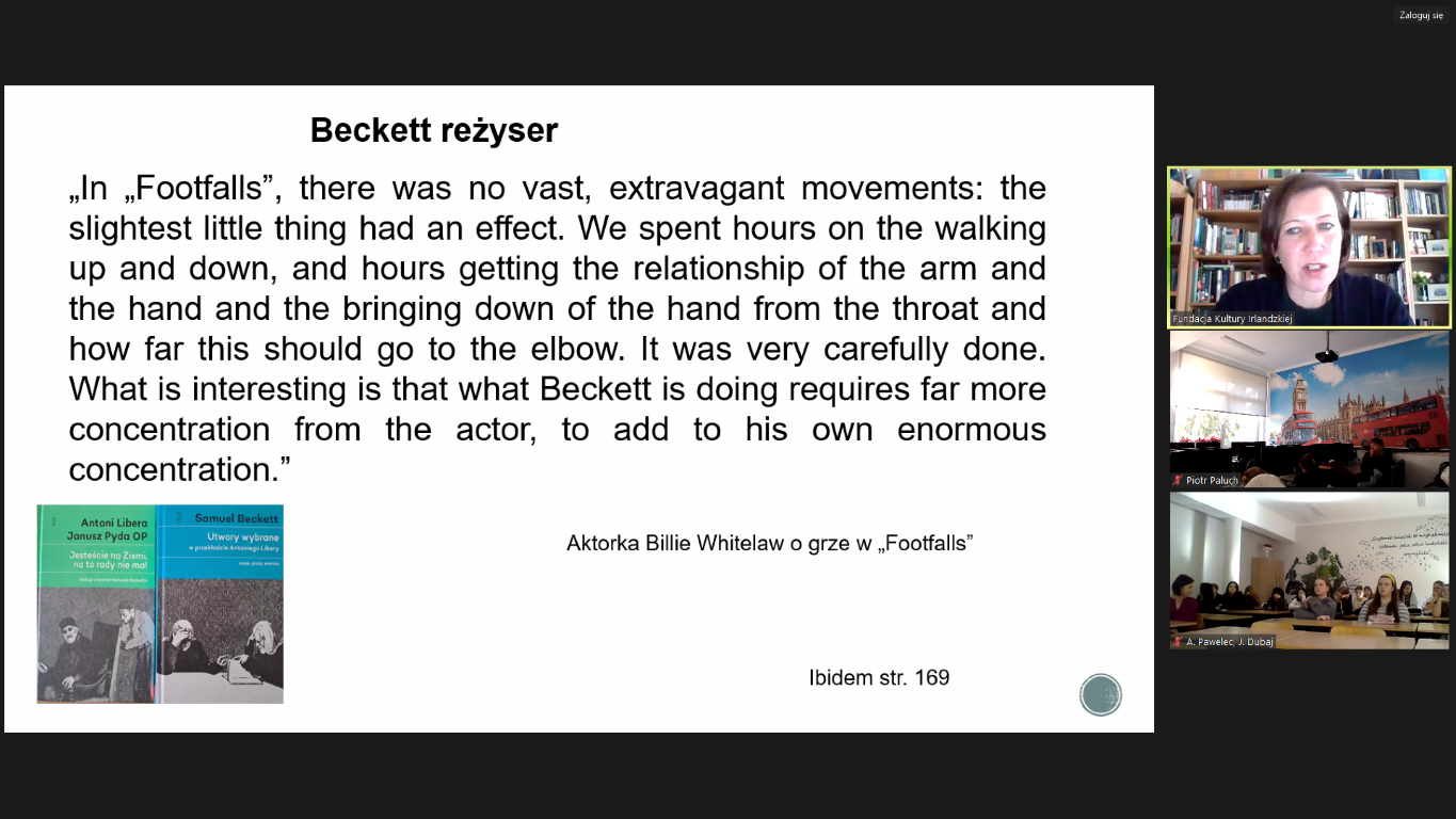 Temat spotkania to: „Ludzkość to my, czy nam się podoba czy nie” – w świecie twórczości Samuela Becketta, z okazji 55 rocznicy Literackiego Nobla dla wszechstronnego irlandzkiego twórcy między innymi teatru absurdu, znanego chyba najbardziej z dramatu „Czekając na Godota” z 1952 roku.