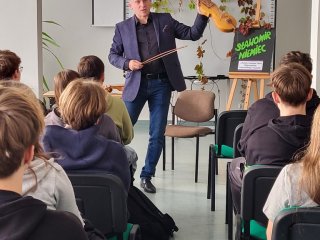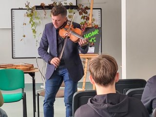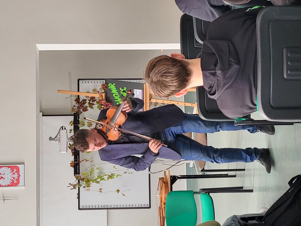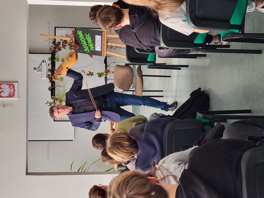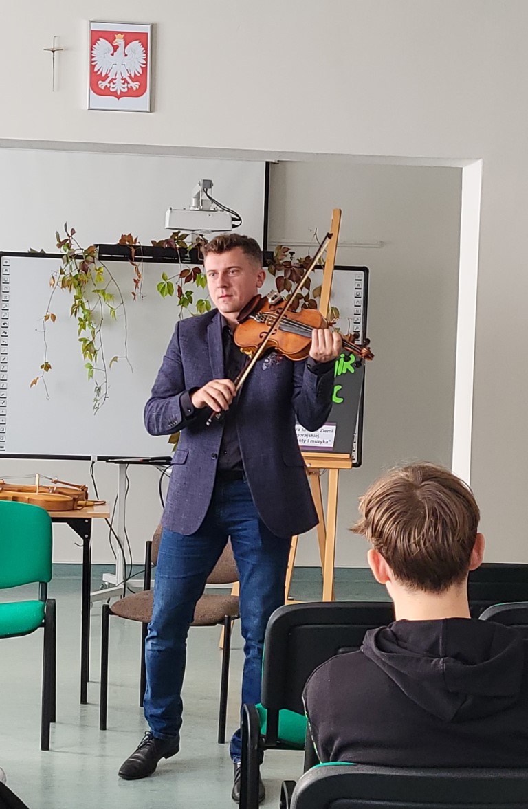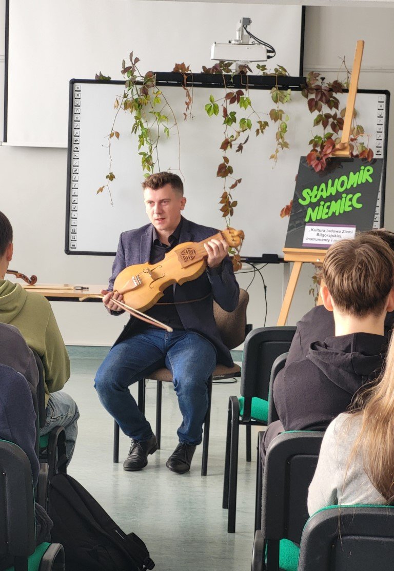 Młodzież miała okazję poznać różne instrumenty ludowe z Biłgoraja i okolic oraz wysłuchać
