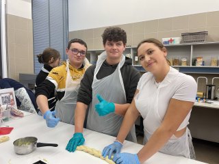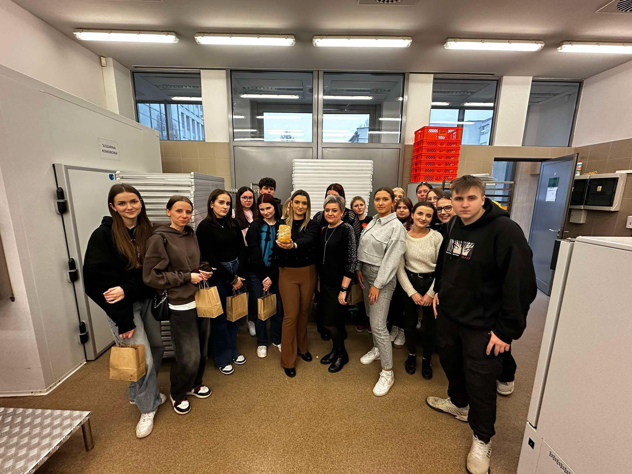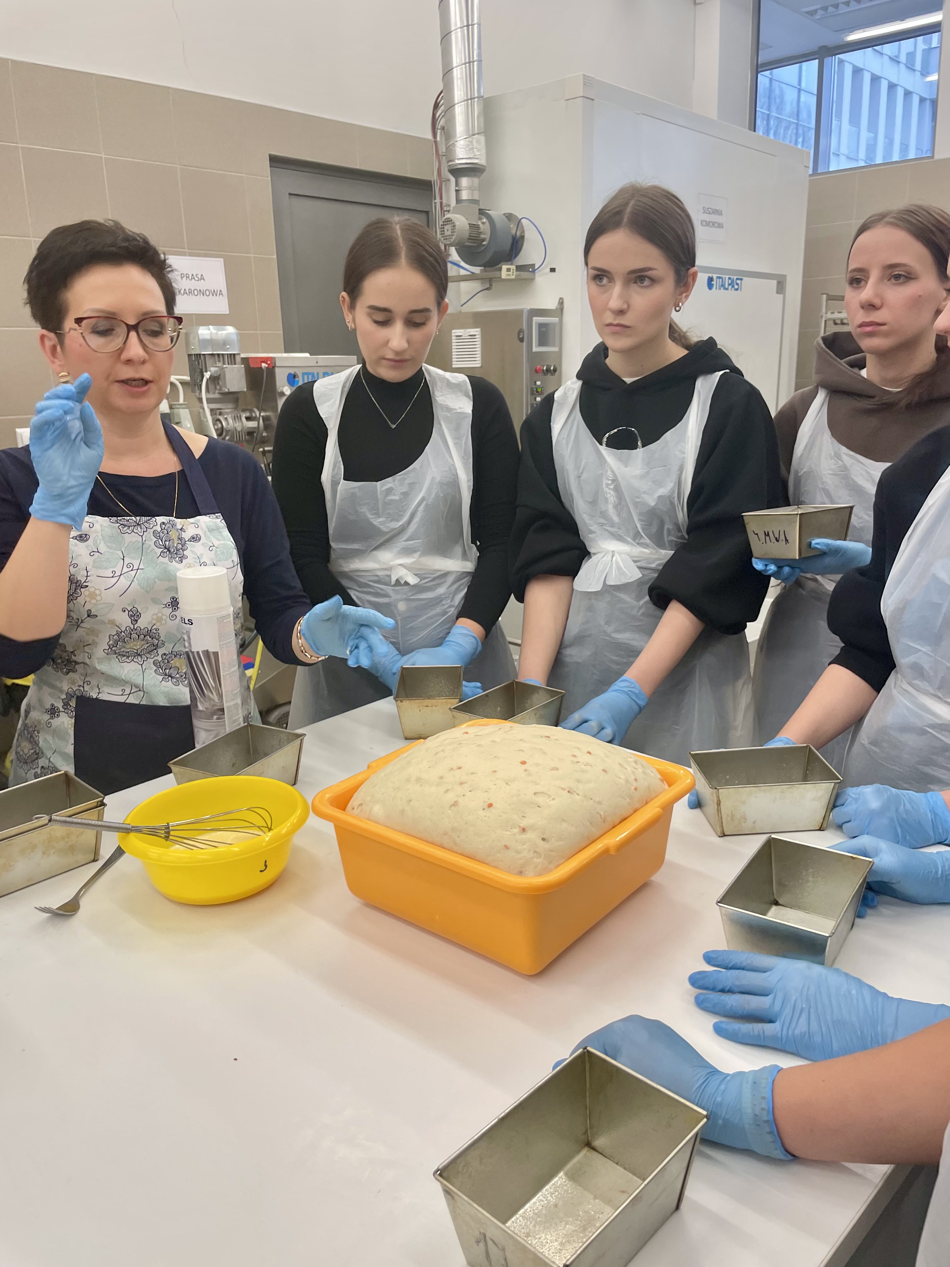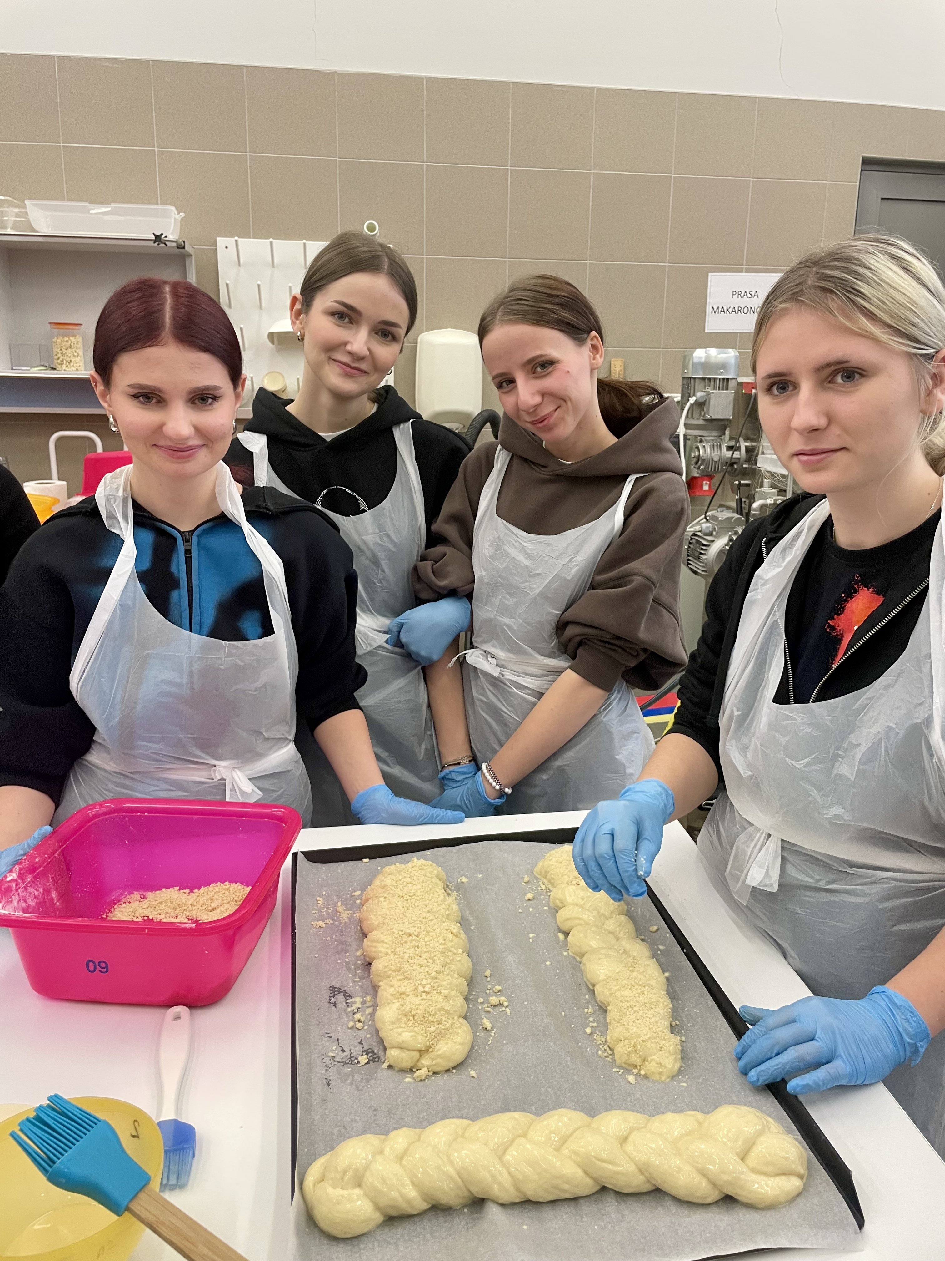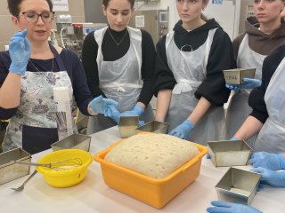 Uczniowie najpierw wysłuchali krótkiego wykładu na temat produktów zbożowych, przygotowywania zakwasu żytniego, sposobu produkcji makaronu, a następnie uczestniczyli w części praktycznej i samodzielnie wykonali: chałkę na mące orkiszowej z kruszonką , chleb pszenny z dodatkiem soczewicy. Ponadto otrzymali zakwas żytni do wypieku chleba żytniego pytlowego do wykonania w domu wraz z inspirującymi przepisami. W kolejnej części warsztatów uczniowie mieli możliwość obejrzenia produkcji makaronu z pszenicy durum od podstaw. Na ten proces składają się: przygotowanie surowców, sporządzenie ciasta, formowanie i wykrawanie w specjalnej maszynie oraz suszenie w odpowiedniej suszarni, sortowanie oraz pakowanie produktu już gotowego. Każdy z uczestników otrzymał samodzielnie upieczone produkty zbożowe: chałkę z kruszonką, chleb udekorowany w dowolny sposób za pomocą szablonów, a także zakwas oraz makaron. Ostatnim punktem programu było zwiedzanie uczelni, sal wykładowych, ćwiczeniowych oraz pracowni gastronomicznych. Uczniowie mieli okazję do zapoznania się z ofertą studiów wyższych i w przyszłości kontynuowania swojej nauki w tym zawodzie. Wyjazd zorganizowała pani Angelika Woźnica - nauczyciel przedmiotów zawodowych gastronomicznych oraz wychowawca klasy 5 TGO pani Anna Kraczowska- Bednarz. Dzięki inicjatywie pani Angeliki Woźnicy nasza szkoła nawiąże współpracę z Wydziałem Nauk o Żywności i Biotechnologii w najbliższym czasie.